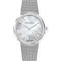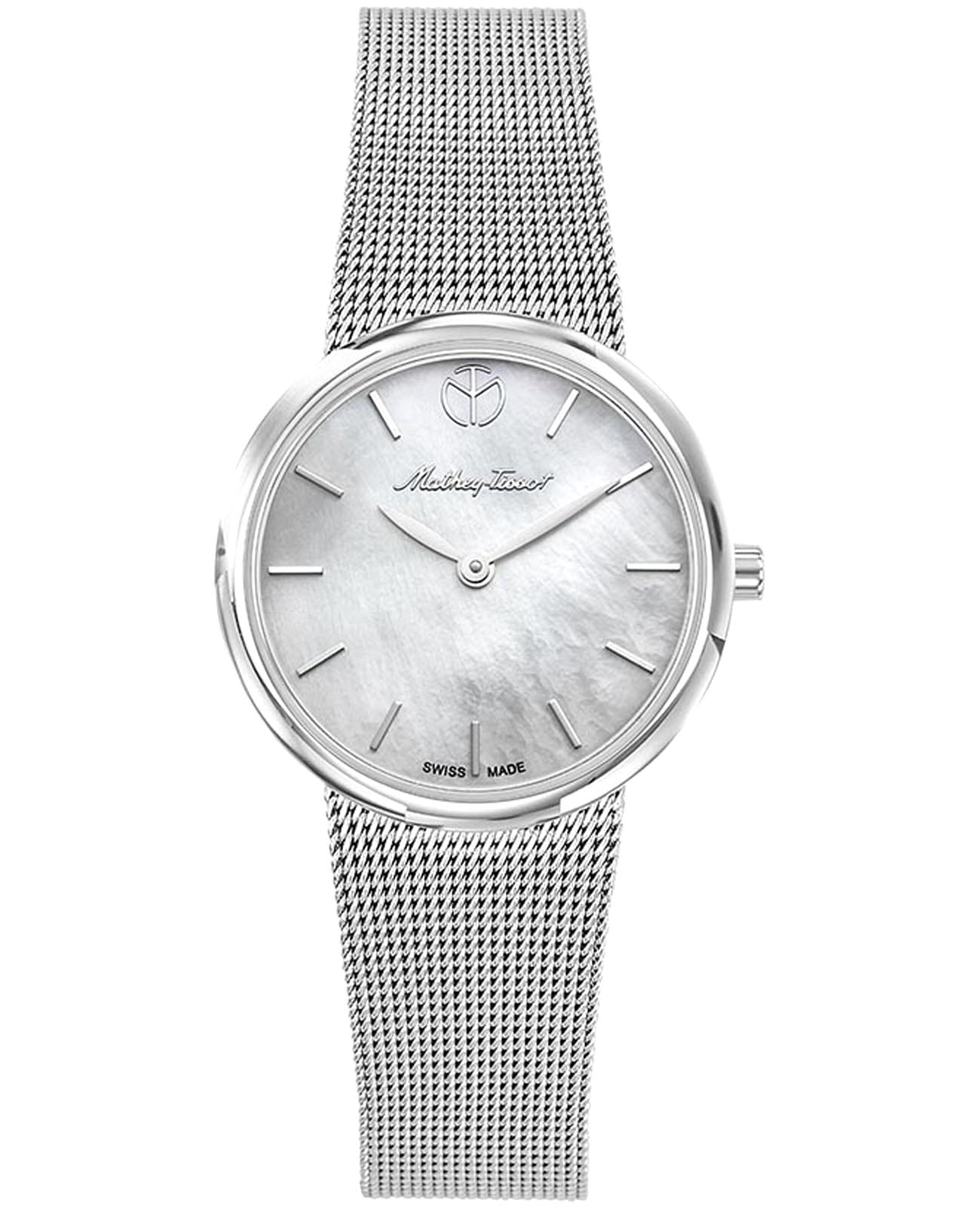 Женские кварцевые часы Mathey-Tissot Milly D403AI — это стильное сочетание элегантности и современного дизайна. Изящный корпус выполнен из нержавеющей стали серебристого цвета, диаметром 30 мм, что придаст образу элегантности и надежности. Изысканный перламутровый циферблат с метками в виде штрихов придает модели особый блеск. Циферблат защищен минеральным стекломМинеральное стеклоМинеральное стекло представляет собой искусственно выращенный минерал кварца. Такое стекло отличается особой устойчивостью к повреждениям и царапинам. Уступает по некоторым качествам сапфировому стеклу. с сапфировым покрытием, обеспечивает устойчивость к царапинам. Часы оснащены надежным кварцевым механизмом. Стальной браслет миланского плетения на раскладном замкеРаскладная застёжкаТакой тип застёжки используется только на браслетах из металла. Она никогда не раскрывается полностью, происходит разделение на 2 и более частей. Раскладывающая застёжка снизит вероятность потери часов к минимуму., гарантирует комфортное и безопасное ношение. Класс водозащиты: 30 метров позволит защитить корпус от случайных брызг или капель дождя. Mathey-Tissot  — отличный выбор для тех, кто ценит утонченность и качество.