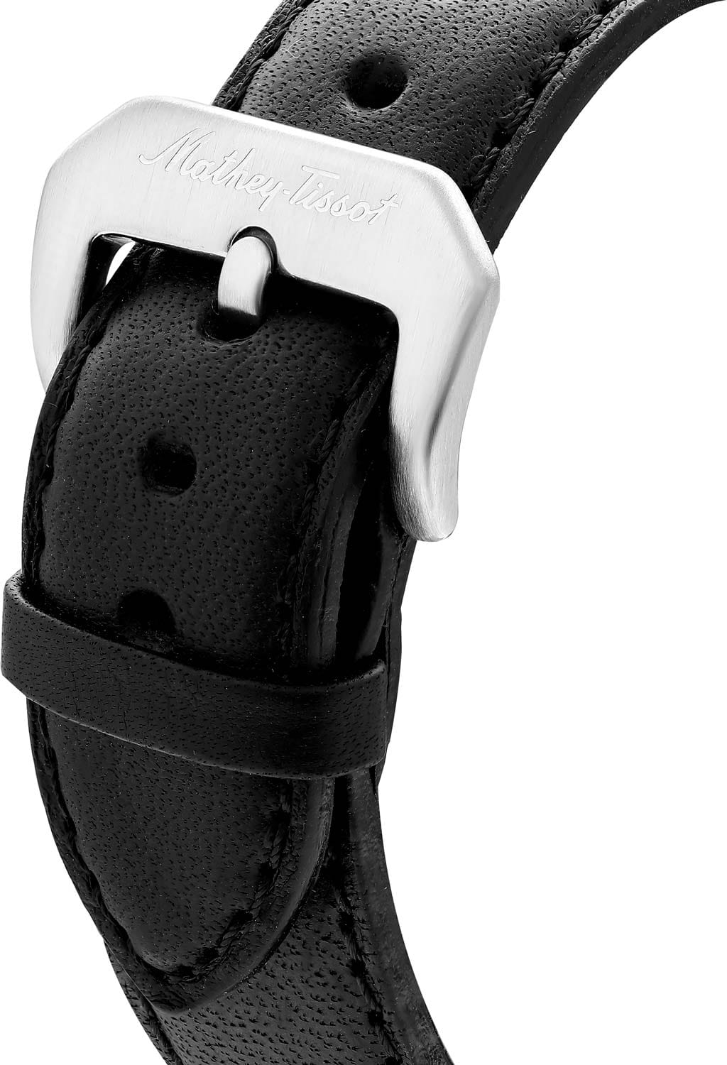 Мужские кварцевые часы Mathey-Tissot Mergulhador GMTGMTОтображение времени второго часового пояса.Такая функция особенно актуальна для путешественников и бизнесменов,которые общаются с людьми из разных стран,теперь вы всегда будете знать,какой час у вашего партнёра или близкого человека. MRGAN — это стильное сочетание элегантности и современного дизайна. Изящный корпус выполнен из нержавеющей стали, диаметром 41 мм, что придаст образу элегантности и надежности. Циферблат с метками в виде штрихов придает модели особый блеск. Циферблат защищен минеральным стекломМинеральное стеклоМинеральное стекло представляет собой искусственно выращенный минерал кварца. Такое стекло отличается особой устойчивостью к повреждениям и царапинам. Уступает по некоторым качествам сапфировому стеклу. с сапфировым покрытием, обеспечивает устойчивость к царапинам. Второй часовой поясВторой часовой поясФункция, позволяющая отображать время двух часовых поясов одновременно. в 24-х часовом формате времени отображается центральной стрелкой. Стрелки и метки с люминесцентным покрытиемЛюминесцентное покрытиеПозволяет считывать показания времени в темноте. Производители наносят на стрелки, часовые индексы, безель или поверхность циферблата светонакопительный состав, дающий холодное свечение. SuperLumiNova, которое светится в темноте после непродолжительной зарядки на свету. Окошко даты находится в положении 6 часов.  Рифленый безельБезельВнешний ободок, закрепляющий стекло. В спортивных часах так называется поворотное кольцо с делениями на циферблате, выполняет роль таймера – замеряет отрезки времени на шкале. Неподвижный безель – элемент декора. Однонаправленно вращающийся безель на дайверских часах позволяет фиксировать моменты погружения и выныривания на поверхность. с минутными отметками вращается в одном направлении. Часы оснащены надежным кварцевым механизмом. Кожаный ремешок на стандартной застёжке гарантирует комфортное и безопасное ношение. Класс водозащиты: 200 метров позволит плавать, нырять и заниматься другими водными видами спорта. Mathey-Tissot  — отличный выбор для тех, кто ценит утонченность и качество.