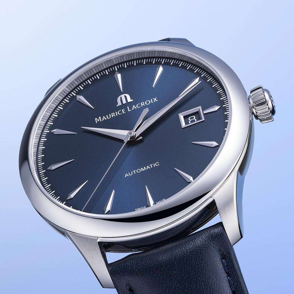 Maurice Lacroix 1975 756008-SS001-430-4 — изящная модель в винтажном стиле с современным исполнением и безупречным вниманием к деталям. Корпус диаметром 40 мм изготовлен из нержавеющей стали с сочетанием полированной и сатинированной отделки. Элегантные пропорции подчёркнуты тонким профилем. Циферблат защищён сапфировым стекломСапфировое стеклоПрочный и надёжный материал из кристалла сапфира синтетического происхождения, характеризующийся особой твёрдостью и устойчивостью к царапинам и повреждениям. с двойным антибликовым покрытиемАнтибликовое покрытиеСлой оксида металла в 0,13-0,3 микрон, благодаря которому стекло часов не бликует и не отражает свет. Антибликовое покрытие уменьшает отражение света в 10 раз, обеспечивая отличную читаемость показателей циферблата., обеспечивающим высокую прозрачность. Синий циферблат с солнечным узором оформлен в духе 70-х годов: родиевые стрелки, скошенные индексы и окно даты на «3 часах». Внутри установлен швейцарский механизм, отличающийся стабильностью и точностью. Модель на кожаном ремешке и стандартной застежке для надёжной и комфортной посадки. Водонепроницаемость до 100 метров делает часы практичными для ежедневного ношения. Maurice Lacroix 1975 — утончённая ретро-эстетика с акцентом на стиль и комфорт.