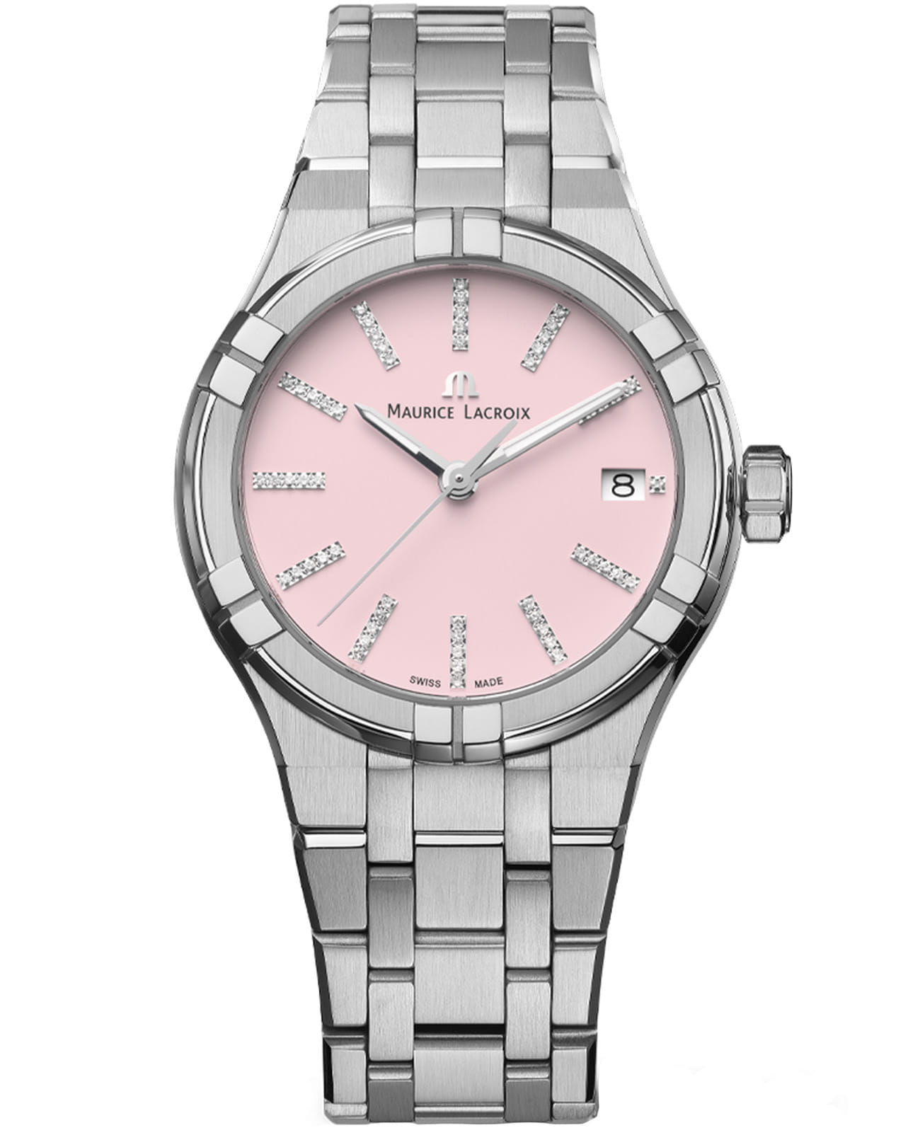 Женские швейцарские механические часы с автоподзаводом Maurice Lacroix Aikon Quartz Colours Edition AI1106-SS002-550-1, механический механизм (автоматический калибр) с высокой точностью. Сапфировое стеклоСапфировое стеклоПрочный и надёжный материал из кристалла сапфира синтетического происхождения, характеризующийся особой твёрдостью и устойчивостью к царапинам и повреждениям. устойчивое к появлению царапин, обладающее высокой прозрачностью. Корпус часов изготовлен из нержавеющей стали. Стрелки с люминесцентным покрытиемЛюминесцентное покрытиеПозволяет считывать показания времени в темноте. Производители наносят на стрелки, часовые индексы, безель или поверхность циферблата светонакопительный состав, дающий холодное свечение.. Водозащита: 100 метров, позволит плавать, нырять и заниматься другими водными видами спорта. Стальной браслет на застёжке-бабочке с кнопкамиЗастёжка "бабочка"Такой вид застёжки дополняется предохранителями, помогающими избежать случайного раскрытия браслета. Обладают изящным исполнением. .