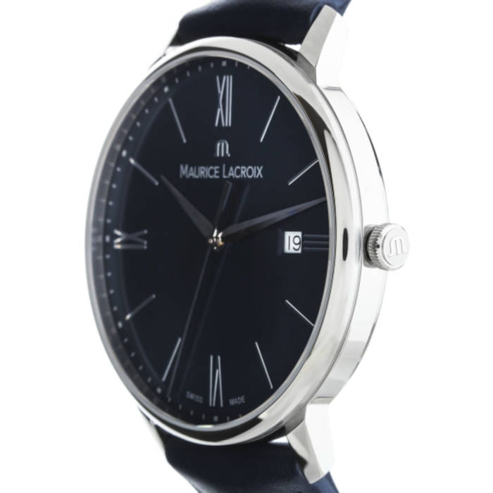 Мужские швейцарские часы Maurice Lacroix Eliros Date EL1118-SS001-410-4, кварцевый механизм с высокой точностью. Сапфировое стеклоСапфировое стеклоПрочный и надёжный материал из кристалла сапфира синтетического происхождения, характеризующийся особой твёрдостью и устойчивостью к царапинам и повреждениям. устойчивое к появлению царапин, обладающее высокой прозрачностью. Корпус часов изготовлен из нержавеющей стали. Окошко даты в положении 3 часов. Класс водозащиты: 50 метров, позволит защитить корпус от случайных брызг или капель дождя. Кожаный ремешок на стандартной застежке.