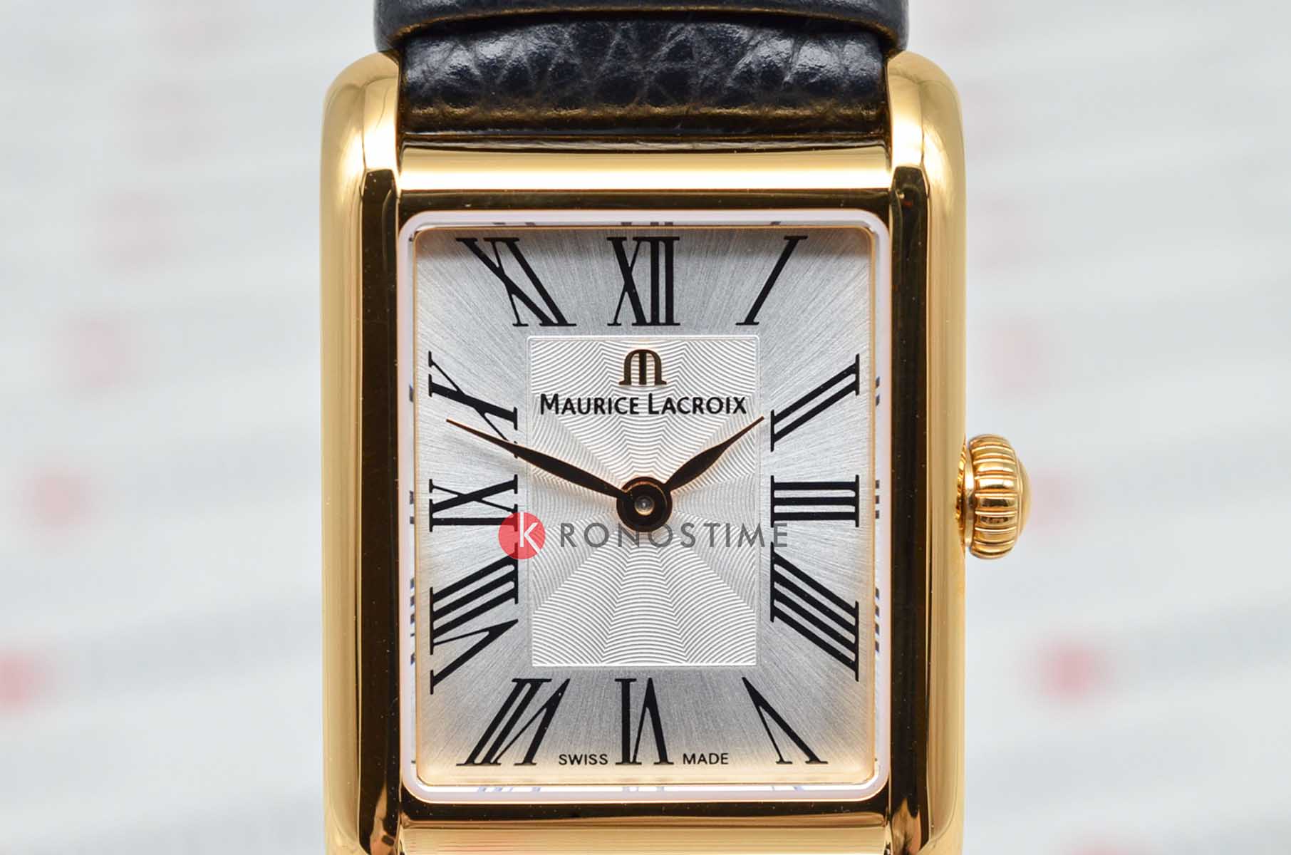 Швейцарские женские кварцевые часы Maurice Lacroix FA1205-PVP01-110-2 из коллекции Fiaba Square. Корпус из нержавеющей стали 316L с PVD-покрытиемPVDУльтратонкое покрытие наносится в технике вакуумного напыления, сочетает в себе нитрид титана особой прочности со слоем золота или оксида хрома. Несёт в себе декоративную или защитную функцию. цвета желтого золота защищен сапфировым стекломСапфировое стеклоПрочный и надёжный материал из кристалла сапфира синтетического происхождения, характеризующийся особой твёрдостью и устойчивостью к царапинам и повреждениям. с антибликовым покрытиемАнтибликовое покрытиеСлой оксида металла в 0,13-0,3 микрон, благодаря которому стекло часов не бликует и не отражает свет. Антибликовое покрытие уменьшает отражение света в 10 раз, обеспечивая отличную читаемость показателей циферблата.. Размер корпуса 24 х 34 мм, толщина 6.5 мм. Серебряный циферблат украшен индексами в виде римских цифр и золотистыми стрелками, создавая элегантный и роскошный облик модели. Часы имеют водонепроницаемость 50 метров, позволит защитить корпус от случайных брызг или капель дождя. Модель комплектуется кожаным ремешком шириной 16 мм. Прочный корпус и надежный механизм гарантируют точность хода и долговечность использования. Эти часы сочетают в себе современный дизайн и классическую элегантность, делая их идеальным выбором для ценительниц стильных аксессуаров.