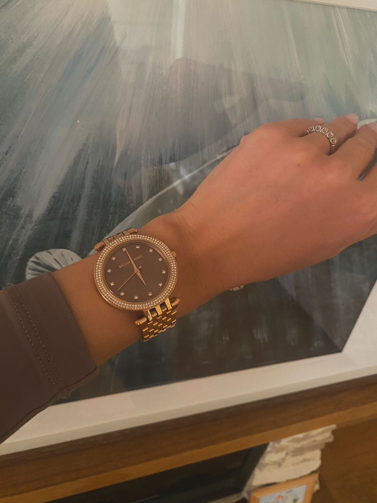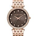Женские американские часы Michael Kors Darci MK3217, кварцевый механизм с высокой точностью. Минеральное стеклоМинеральное стеклоМинеральное стекло представляет собой искусственно выращенный минерал кварца. Такое стекло отличается особой устойчивостью к повреждениям и царапинам. Уступает по некоторым качествам сапфировому стеклу., устойчивое к мелким механическим повреждениям. Корпус часов выполнен из нержавеющей стали с PVD-покрытиемPVDУльтратонкое покрытие наносится в технике вакуумного напыления, сочетает в себе нитрид титана особой прочности со слоем золота или оксида хрома. Несёт в себе декоративную или защитную функцию.. БезельБезельВнешний ободок, закрепляющий стекло. В спортивных часах так называется поворотное кольцо с делениями на циферблате, выполняет роль таймера – замеряет отрезки времени на шкале. Неподвижный безель – элемент декора. Однонаправленно вращающийся безель на дайверских часах позволяет фиксировать моменты погружения и выныривания на поверхность. и циферблат украшены кристаллами. Класс водозащиты: 50 метров, позволит защитить корпус от случайных брызг или капель дождя. Стальной браслет с PVD-покрытиемPVDУльтратонкое покрытие наносится в технике вакуумного напыления, сочетает в себе нитрид титана особой прочности со слоем золота или оксида хрома. Несёт в себе декоративную или защитную функцию. миланского плетения на раскладном замкеРаскладной замокДанный вариант застежки используется только на часах с металлическим браслетом. Отличительная особенность такого крепления в том, что длина браслета становится универсальной и вы можете самостоятельно отрегулировать нужный вам размер – застежка просто двигается по браслету часов..