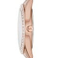 Женские американские часы с минеральным стекломМинеральное стеклоМинеральное стекло представляет собой искусственно выращенный минерал кварца. Такое стекло отличается особой устойчивостью к повреждениям и царапинам. Уступает по некоторым качествам сапфировому стеклу. Michael Kors Harlowe MK4710, кварцевый механизм с высокой точностью. Корпус и браслет часов изготовлены из нержавеющей стали с PVD-покрытиемPVDУльтратонкое покрытие наносится в технике вакуумного напыления, сочетает в себе нитрид титана особой прочности со слоем золота или оксида хрома. Несёт в себе декоративную или защитную функцию.. Циферблат, браслет и безельБезельВнешний ободок, закрепляющий стекло. В спортивных часах так называется поворотное кольцо с делениями на циферблате, выполняет роль таймера – замеряет отрезки времени на шкале. Неподвижный безель – элемент декора. Однонаправленно вращающийся безель на дайверских часах позволяет фиксировать моменты погружения и выныривания на поверхность. украшены кристаллами. Метки в виде штрихов и римских цифр. Заводная головка с защитой. Класс водозащиты: 50 метров, позволит защитить корпус от случайных брызг или капель дождя. Стальной браслет на раскладной застёжкеРаскладная застёжкаТакой тип застёжки используется только на браслетах из металла. Она никогда не раскрывается полностью, происходит разделение на 2 и более частей. Раскладывающая застёжка снизит вероятность потери часов к минимуму..