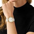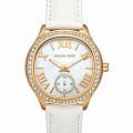 Эти часы — идеальный аксессуар, который придаст женскому образу завершенность и особый шарм. Женские американские часы Michael Kors Sage MK4818 имеют кварцевый механизм с высокой точностью. Корпус и безельБезельВнешний ободок, закрепляющий стекло. В спортивных часах так называется поворотное кольцо с делениями на циферблате, выполняет роль таймера – замеряет отрезки времени на шкале. Неподвижный безель – элемент декора. Однонаправленно вращающийся безель на дайверских часах позволяет фиксировать моменты погружения и выныривания на поверхность.часов изготовлены из нержавеющей стали с золотистым PVD-покрытиемPVDУльтратонкое покрытие наносится в технике вакуумного напыления, сочетает в себе нитрид титана особой прочности со слоем золота или оксида хрома. Несёт в себе декоративную или защитную функцию.. Перламутровый циферблат и безельБезельВнешний ободок, закрепляющий стекло. В спортивных часах так называется поворотное кольцо с делениями на циферблате, выполняет роль таймера – замеряет отрезки времени на шкале. Неподвижный безель – элемент декора. Однонаправленно вращающийся безель на дайверских часах позволяет фиксировать моменты погружения и выныривания на поверхность. украшены кристаллами. Циферблат с метками в виде римских цифр и штрихов защищен минеральным стекломМинеральное стеклоМинеральное стекло представляет собой искусственно выращенный минерал кварца. Такое стекло отличается особой устойчивостью к повреждениям и царапинам. Уступает по некоторым качествам сапфировому стеклу., что обеспечивает надежную защиту от царапин и повреждений. Секундная стрелка вынесена на отдельный циферблат, обрамленный кристаллами, что придает часам уникальный и стильный вид. Люминесцентное покрытиеЛюминесцентное покрытиеПозволяет считывать показания времени в темноте. Производители наносят на стрелки, часовые индексы, безель или поверхность циферблата светонакопительный состав, дающий холодное свечение. на стрелках обеспечивает отличную видимость в темноте. Класс водозащиты: 50 метров, позволит защитить корпус от случайных брызг или капель дождя. Удобный кожаный белый ремешок с тиснением под кожу крокодила с классической застежкой обеспечивает надежную фиксацию на запястье и легкость в надевании и снятии. Эти часы станут отличным дополнением к любому наряду, подчеркивая индивидуальность и стиль их обладательницы.