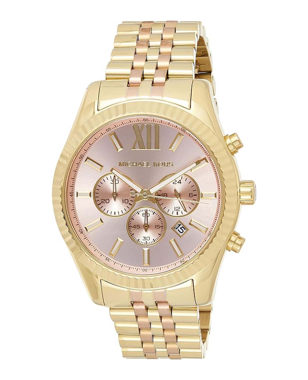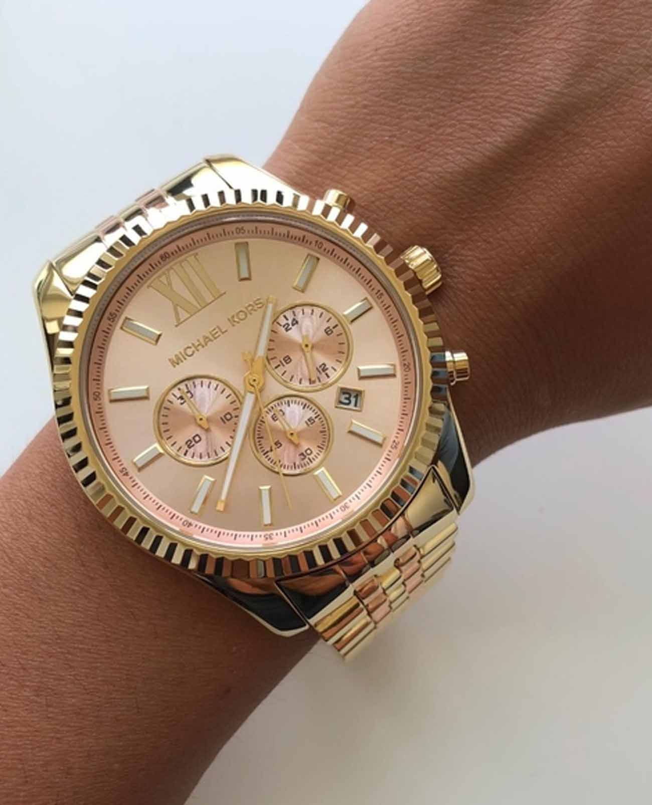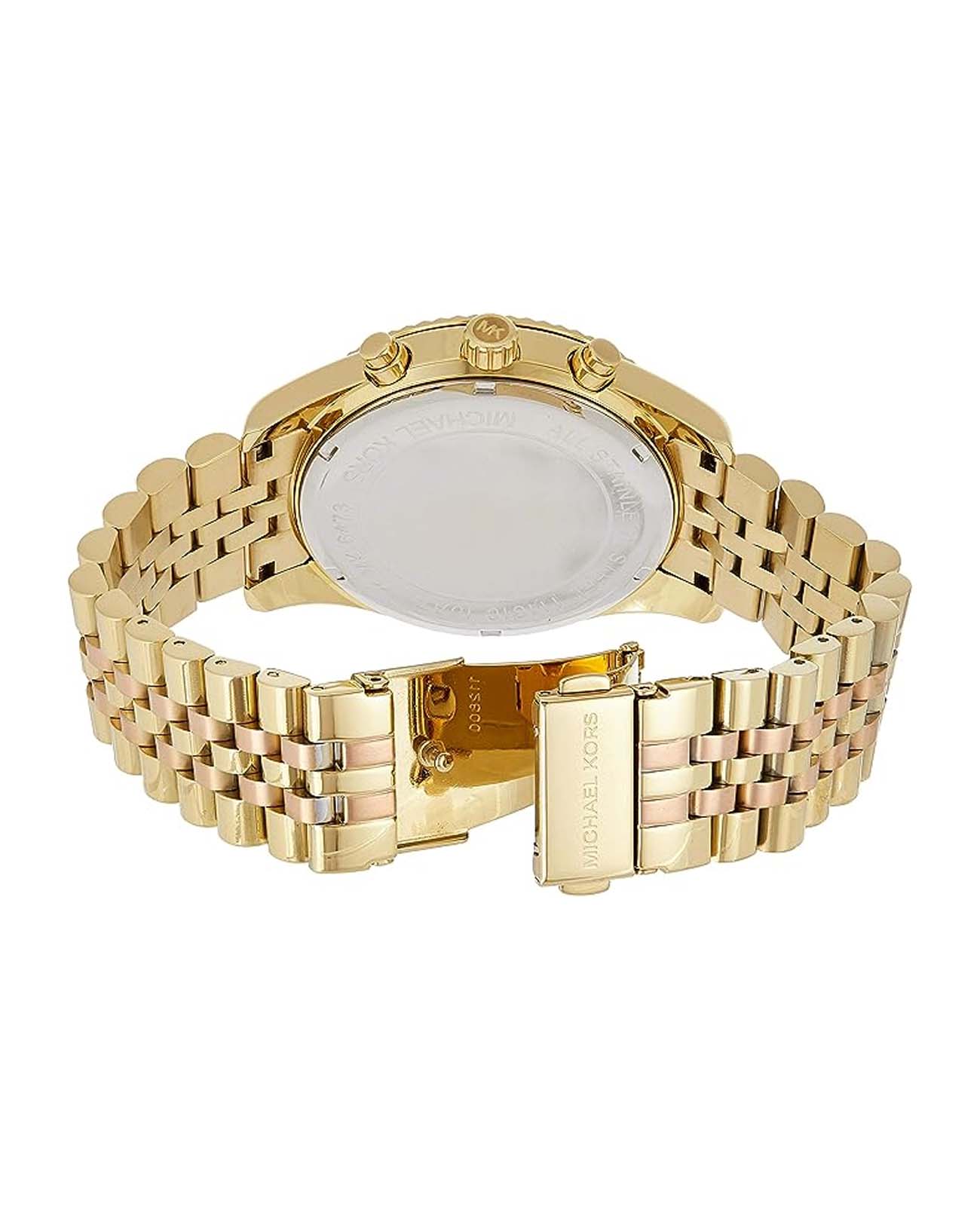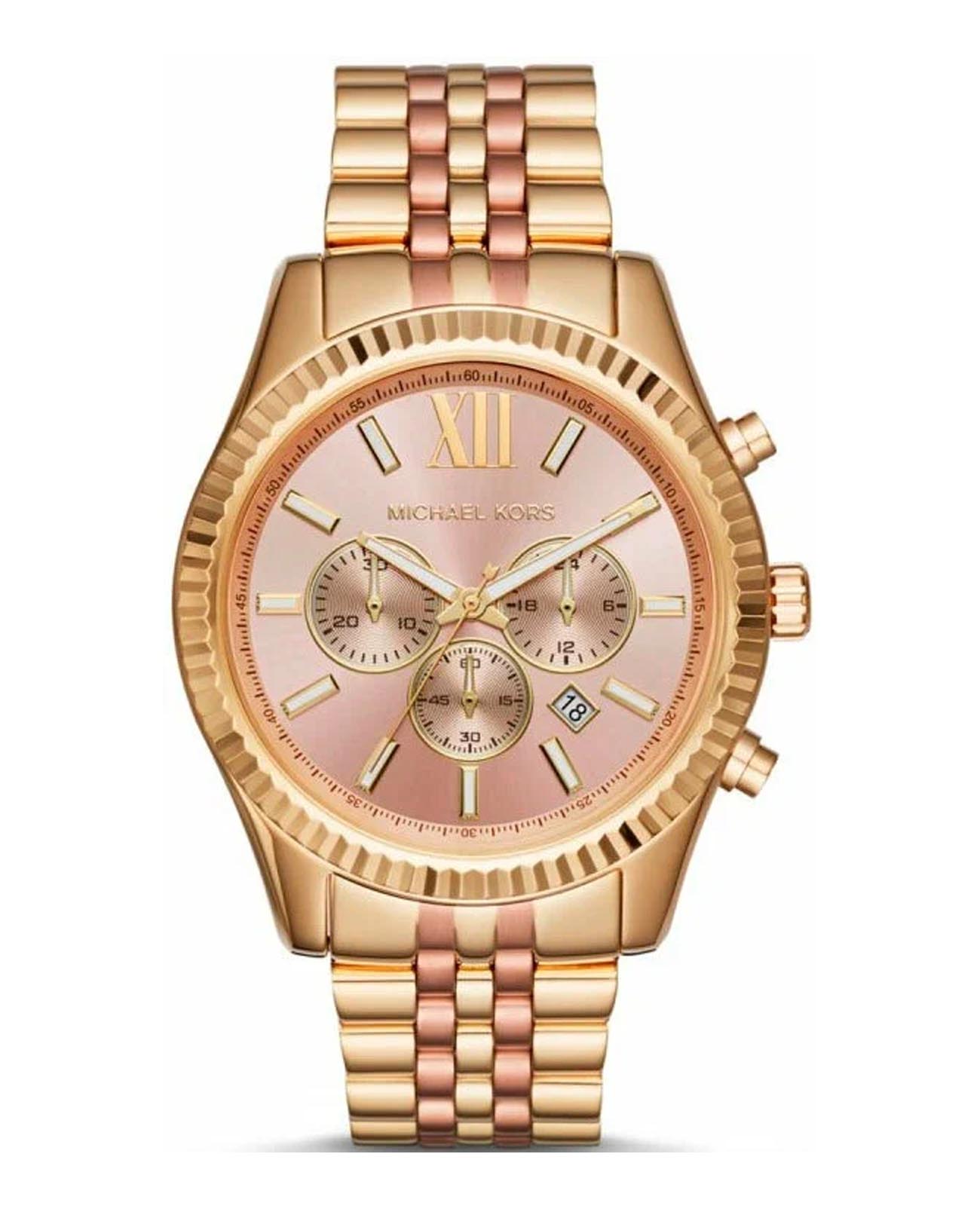 Женские американские часы-хронографХронографФункция позволяет измерять отрезки времени с особой точностью: часы, минуты, секунды. Верным признаком хронографа является наличие на циферблате 3 дополнительных окошек-счётчиков. с секундомеромСекундомерСекундоме́р — прибор, способный измерять интервалы времени с точностью до долей секунды. и с минеральным стекломМинеральное стеклоМинеральное стекло представляет собой искусственно выращенный минерал кварца. Такое стекло отличается особой устойчивостью к повреждениям и царапинам. Уступает по некоторым качествам сапфировому стеклу. Michael Kors Lexington MK6473, кварцевый механизм с высокой точностью. Корпус часов изготовлен из нержавеющей стали с PVD-покрытиемPVDУльтратонкое покрытие наносится в технике вакуумного напыления, сочетает в себе нитрид титана особой прочности со слоем золота или оксида хрома. Несёт в себе декоративную или защитную функцию.. Три дополнительных индикатора на циферблате. 12-ти и 24-х часовой формат. Окошко даты находится в положении между 4 и 5 часами. Стрелки с люминесцентным покрытиемЛюминесцентное покрытиеПозволяет считывать показания времени в темноте. Производители наносят на стрелки, часовые индексы, безель или поверхность циферблата светонакопительный состав, дающий холодное свечение.. Класс водозащиты: 100 метров, позволит плавать, нырять и заниматься другими водными видами спорта. Стальной браслет из нержавеющей стали с PVD-покрытиемPVDУльтратонкое покрытие наносится в технике вакуумного напыления, сочетает в себе нитрид титана особой прочности со слоем золота или оксида хрома. Несёт в себе декоративную или защитную функцию. на раскладной застёжкеРаскладная застёжкаТакой тип застёжки используется только на браслетах из металла. Она никогда не раскрывается полностью, происходит разделение на 2 и более частей. Раскладывающая застёжка снизит вероятность потери часов к минимуму..