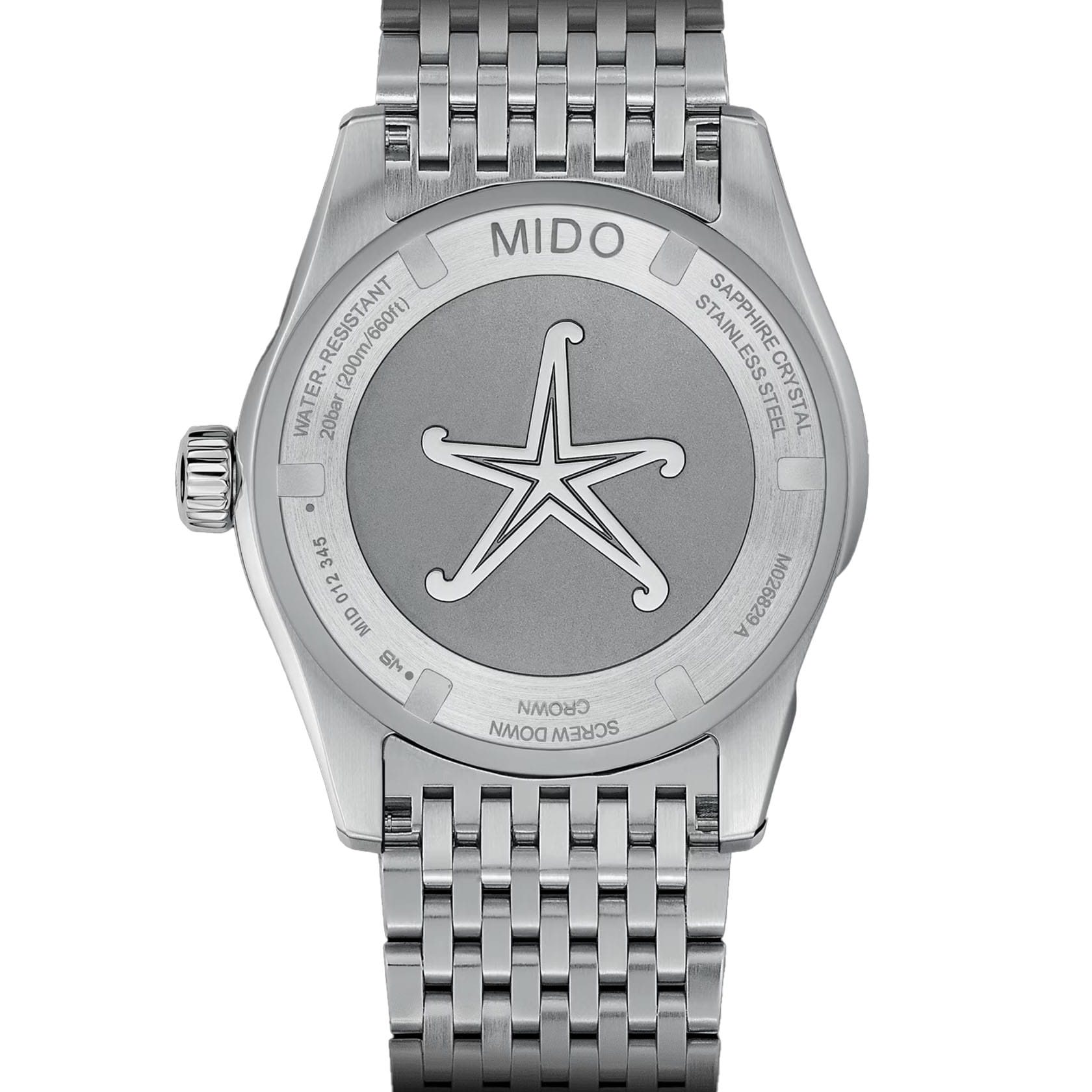 Модель оснащена автоматическим механизмом MIDO Caliber 80 (на базе ETA C07.661), обеспечивающим запас хода до 80 часов. Функционал включает индикацию часов, минут, секунд, даты в положении «3 часа» и второго часового пояса GMTGMTОтображение времени второго часового пояса.Такая функция особенно актуальна для путешественников и бизнесменов,которые общаются с людьми из разных стран,теперь вы всегда будете знать,какой час у вашего партнёра или близкого человека..