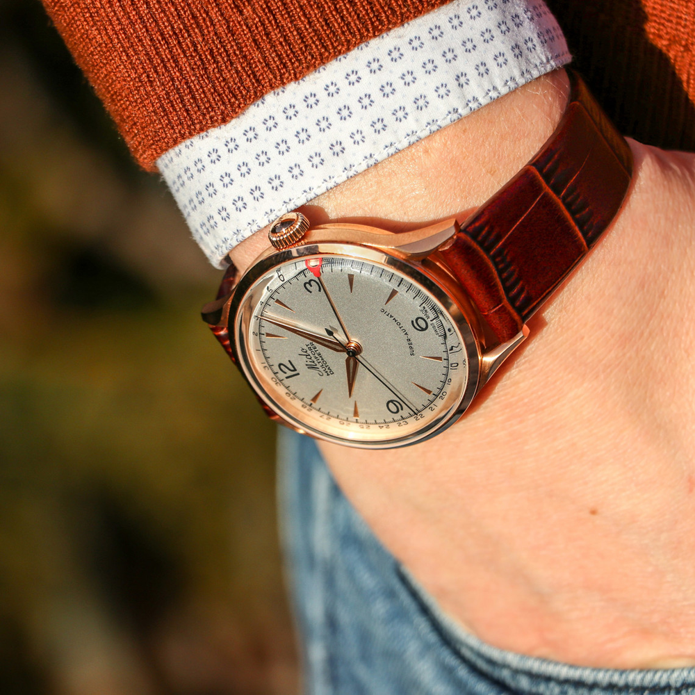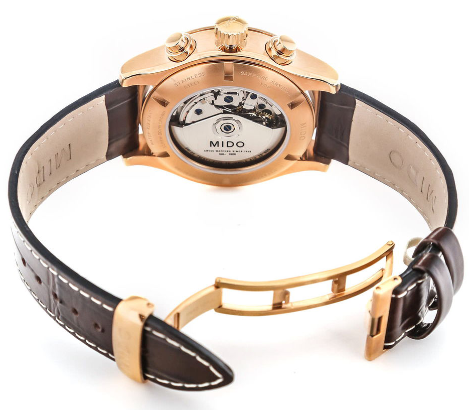 Multifort Datometer Limited Edition - лимитированный выпуск (1918 экземпляров), переиздание одноименной модели 1939-го года в честь векового юбилея марки Mido. Завинчивающаяся прозрачная задняя крышка. Запас хода до 80 часов. Мужские швейцарские механические часы (автоматический калибр) с высокой точностью. Сапфировое стеклоСапфировое стеклоПрочный и надёжный материал из кристалла сапфира синтетического происхождения, характеризующийся особой твёрдостью и устойчивостью к царапинам и повреждениям. устойчивое к появлению царапин, обладающее высокой прозрачностью. Класс водозащиты: 50 метров, защитит корпус от случайных брызг и капель дождя. Корпус часов изготовлен из стали с PVD-покрытиемPVDУльтратонкое покрытие наносится в технике вакуумного напыления, сочетает в себе нитрид титана особой прочности со слоем золота или оксида хрома. Несёт в себе декоративную или защитную функцию. .