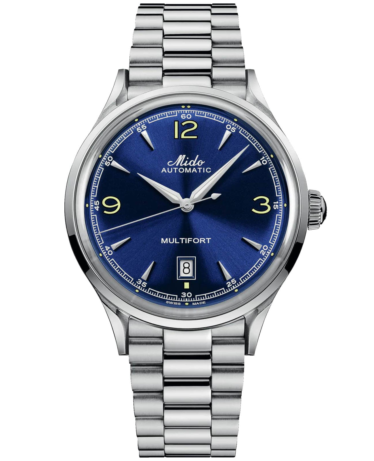Часы Multifort Powerwind Chronometer, выполненные в стиле ретро и отличающиеся исключительной надежностью, знаменуют собой важную веху в истории Mido и ее богатом опыте в часовом деле. Эта ограниченная серия из 1954 экземпляров названа в честь революционной модели «Powerwind», выпущенной в 1954 году, которая в то время была самым точным и надежным механизмом Mido. Циферблат дополнен сапфировым стекломСапфировое стеклоПрочный и надёжный материал из кристалла сапфира синтетического происхождения, характеризующийся особой твёрдостью и устойчивостью к царапинам и повреждениям.. Браслет с застёжкой-бабочкой с кнопкамиЗастёжка "бабочка"Такой вид застёжки дополняется предохранителями, помогающими избежать случайного раскрытия браслета. Обладают изящным исполнением. .