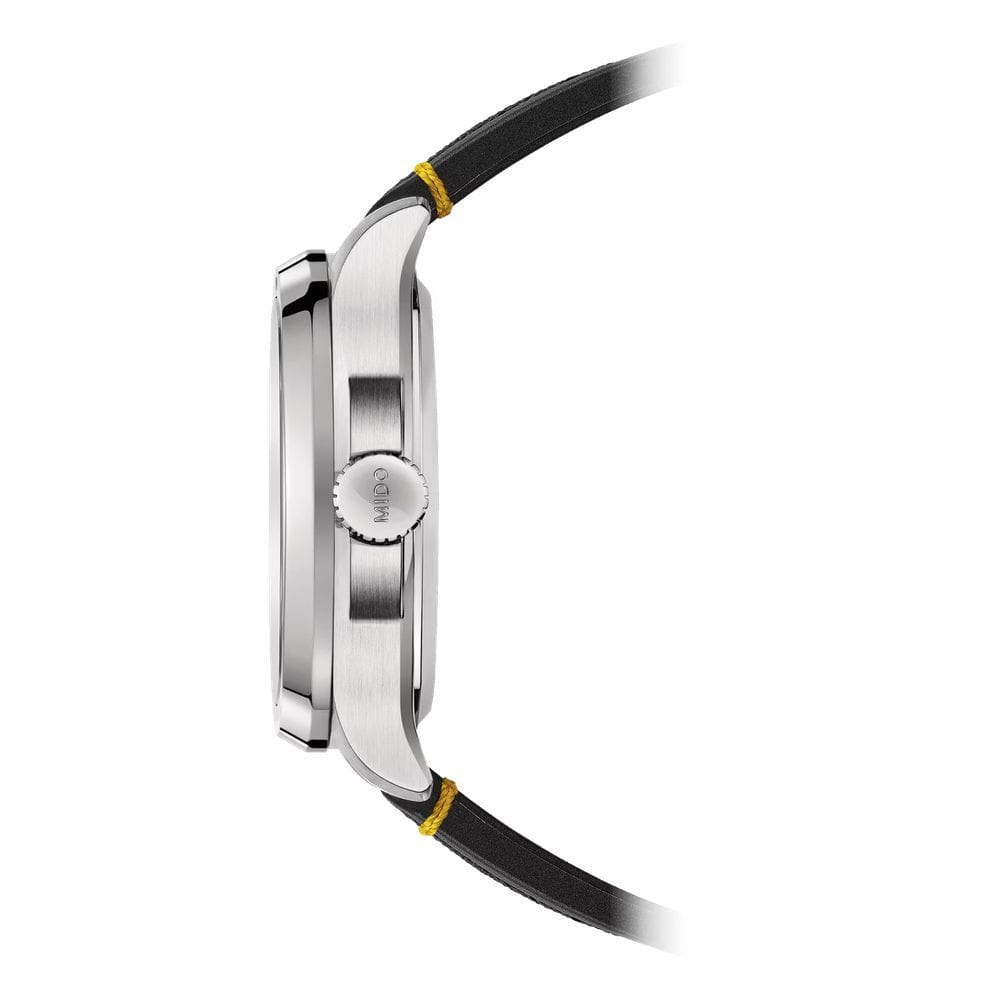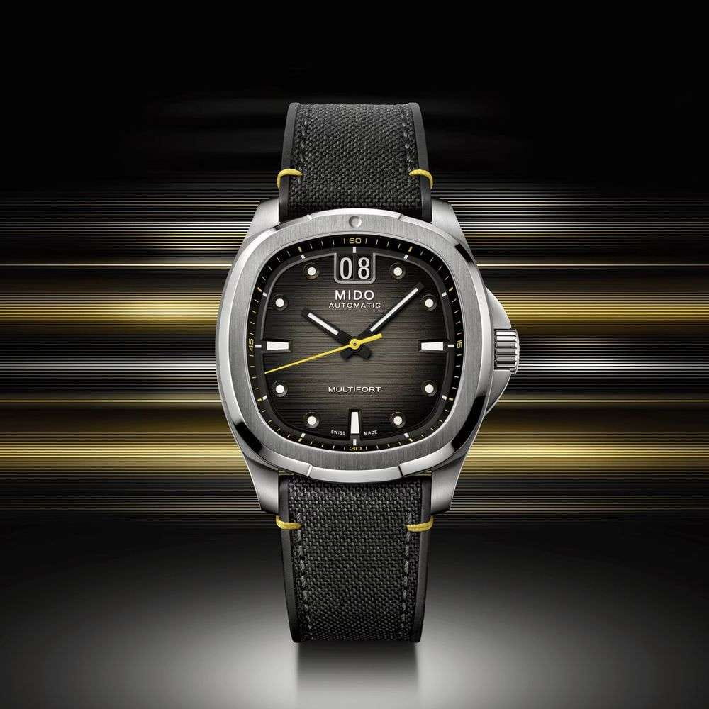 Мужские механические швейцарские часы Mido Multifort TV Big Date M049.526.17.081.01, механический механизм (автоматический калибр) с высокой точностью. Сапфировое стеклоСапфировое стеклоПрочный и надёжный материал из кристалла сапфира синтетического происхождения, характеризующийся особой твёрдостью и устойчивостью к царапинам и повреждениям. устойчивое к появлению царапин, обладающее высокой прозрачностью. Корпус часов изготовлен из нержавеющей стали в форме телевизора, столь же впечатляющий, сколь и точный, благодаря своему мощному механическому механизму. Современный и динамичный дизайн этих швейцарских часов подчеркивается ярким горизонтальным циферблатом с матовой отделкой, а также их отличительной функцией: большой датой в положении 12 часов. Стрелки с люминесцентным покрытиемЛюминесцентное покрытиеПозволяет считывать показания времени в темноте. Производители наносят на стрелки, часовые индексы, безель или поверхность циферблата светонакопительный состав, дающий холодное свечение.. Мощный автоматический механизм последнего поколения Calibre 80 оснащен высокотехнологичной балансировочной пружиной Nivachron ™ , которая обеспечивает исключительную устойчивость к ударам и магнитным полям. Класс водозащиты: 100 метров, позволит плавать, нырять и заниматься другими водными видами спорта. Тканевый ремешок на стандартной застежке.