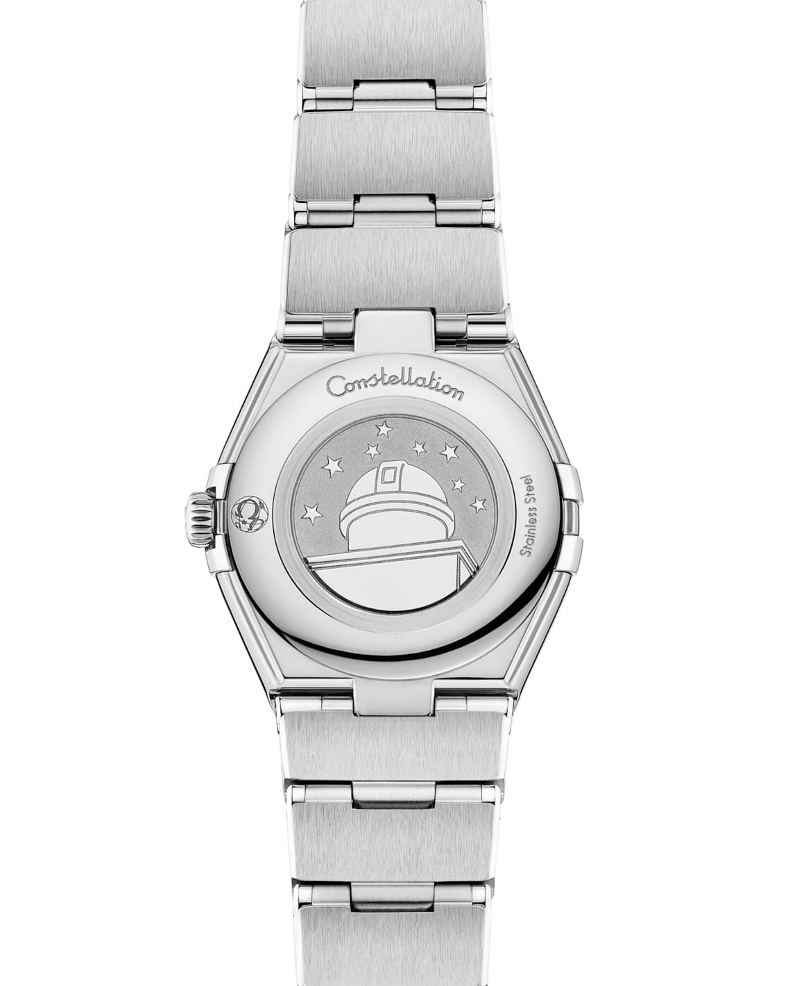 Как застывшая частица звездного неба, легендарные часы OMEGA Constellation воплощают космическую гармонию в своем узнаваемом корпусе с плавными полукруглыми гранями и зеркальными скобами, напоминающими лунные блики. Эта изящная 25-миллиметровая модель из нержавеющей стали украшена безелемБезельВнешний ободок, закрепляющий стекло. В спортивных часах так называется поворотное кольцо с делениями на циферблате, выполняет роль таймера – замеряет отрезки времени на шкале. Неподвижный безель – элемент декора. Однонаправленно вращающийся безель на дайверских часах позволяет фиксировать моменты погружения и выныривания на поверхность. с бриллиантовой россыпью, сверкающей подобно созвездию. Перламутровый циферблат с лазерной гравировкой узора Supernova переливается, словно туманность, где каждый завиток рассказывает историю далеких галактик. Стрелки и звезда Constellation из 18-каратного белого золота18-каратное золотоОбозначение по каратной системе пробирования, оно показывает, сколько драгоценного металла содержится в изделии. 18 карат - в составе 75% чистого золота, соответствует 750 пробе.