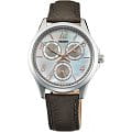 Кварцевые часы; WR 50; Женские; Минеральное стекло; Корпус Нержавеющая сталь, кожаный ремень; Индикация числа и дня недели.
