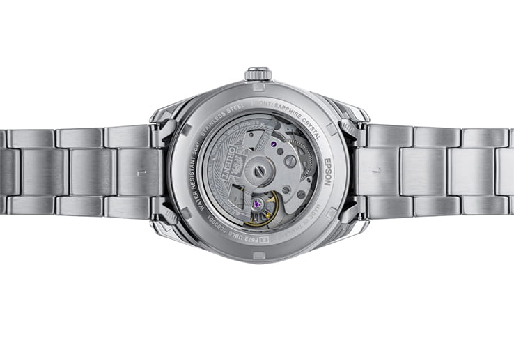 Orient Classic Automatic RA-AC0R02L – элегантные механические часы, сочетающие классический дизайн и современные технологии. Корпус диаметром 38,5 мм выполнен из нержавеющей стали, обеспечивая долговечность и стильный внешний вид. Синий циферблат с лаконичными метками и стрелками защищён сапфировым стекломСапфировое стеклоПрочный и надёжный материал из кристалла сапфира синтетического происхождения, характеризующийся особой твёрдостью и устойчивостью к царапинам и повреждениям., устойчивым к царапинам. Часы оснащены автоматическим механизмом Orient с калибром F6722. Функциональность включает индикацию даты, расположенной в окне на отметке «3 часа». Водозащита до 50 метров (5 бар) делает модель подходящей для повседневного использования, защищая её от случайных брызг. Часы с люминесцентным покрытиемЛюминесцентное покрытиеПозволяет считывать показания времени в темноте. Производители наносят на стрелки, часовые индексы, безель или поверхность циферблата светонакопительный состав, дающий холодное свечение., обеспечивающими мгновенное считывание времени даже в темноте. Элегантный браслет из нержавеющей стали оснащён раскладной застёжкойРаскладная застёжкаТакой тип застёжки используется только на браслетах из металла. Она никогда не раскрывается полностью, происходит разделение на 2 и более частей. Раскладывающая застёжка снизит вероятность потери часов к минимуму., обеспечивающей комфортное ношение и надёжную фиксацию на запястье.