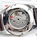 Модель обладает водозащитой до 50 метров, подходящей для повседневного использования. Дополняет образ коричневый кожаный ремешок с классической пряжкой, подчёркивающий стильную строгость модели.