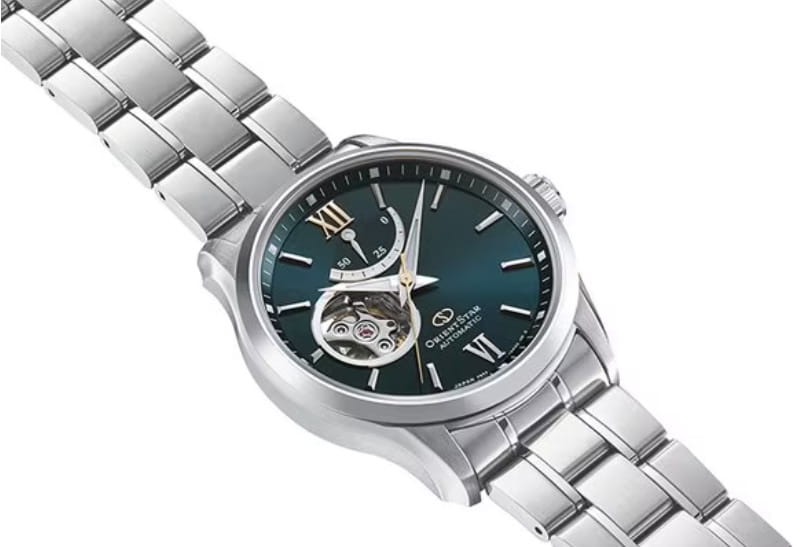 Мужские изысканные часы Orient Contemporary Semi-Skeleton RE-AT0003E — это стильное сочетание современного дизайна и часового мастерства. Корпус из нержавеющей стали с диаметром 39.3 мм защищён сапфировым стекломСапфировое стеклоПрочный и надёжный материал из кристалла сапфира синтетического происхождения, характеризующийся особой твёрдостью и устойчивостью к царапинам и повреждениям. с антибликовым покрытиемАнтибликовое покрытиеСлой оксида металла в 0,13-0,3 микрон, благодаря которому стекло часов не бликует и не отражает свет. Антибликовое покрытие уменьшает отражение света в 10 раз, обеспечивая отличную читаемость показателей циферблата., что обеспечивает отличную видимость и защиту от царапин. Особенностью этой модели является прозрачное окошко на циферблате, через которое можно наблюдать за работой сложного внутреннего механизма. Элегантные часы оснащены калибром F6R42. Элегантный браслет из нержавеющей стали с оснащён раскладной застёжкойРаскладная застёжкаТакой тип застёжки используется только на браслетах из металла. Она никогда не раскрывается полностью, происходит разделение на 2 и более частей. Раскладывающая застёжка снизит вероятность потери часов к минимуму., что обеспечивает удобство и надёжность. Эта изысканная модель имеет люминесцентное покрытиеЛюминесцентное покрытиеПозволяет считывать показания времени в темноте. Производители наносят на стрелки, часовые индексы, безель или поверхность циферблата светонакопительный состав, дающий холодное свечение. на стрелках и метках для отличной читаемости в темноте. Водозащита до 10 ATM позволяет использовать часы не только в повседневной жизни, но и при активности на воде. Orient Contemporary Semi-skeleton RE-AT0003E — это выбор для тех, кто ценит утончённость, стиль и высочайшее качество.