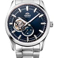 Часы Orient RA-AR0002L из коллекции Contemporary — это сочетание элегантности и современных технологий. Корпус диаметром 40,8 мм выполнен из нержавеющей стали, защищён Сапфировым стекломСапфировое стеклоПрочный и надёжный материал из кристалла сапфира синтетического происхождения, характеризующийся особой твёрдостью и устойчивостью к царапинам и повреждениям., что обеспечивает долговечность и стойкость к царапинам. Синий циферблат с люминесцентными стрелками и меткамиЛюминесцентное покрытиеПозволяет считывать показания времени в темноте. Производители наносят на стрелки, часовые индексы, безель или поверхность циферблата светонакопительный состав, дающий холодное свечение. гарантирует отличную читаемость в любых условиях. Полу-скелетонный дизайн с окошком на отметке «9 часов» добавляет изысканности, позволяя наблюдать за работой механизма. Автоматический механизм Orient Calibre F6T22 поддерживает ручной завод и функцию остановки секундной стрелки, обеспечивая высокую точность и удобство настройки. Запас хода до 40 часов делает часы практичным аксессуаром для повседневного использования. Браслет из нержавеющей стали с раскладной застёжкой обеспечивает комфортное ношение и надёжную фиксацию. Водонепроницаемость до 50 метров защищает часы от случайных брызг, делая их подходящими для ежедневной носки. Orient RA-AR0002L — это выбор для тех, кто ценит стиль, функциональность и надёжность.
