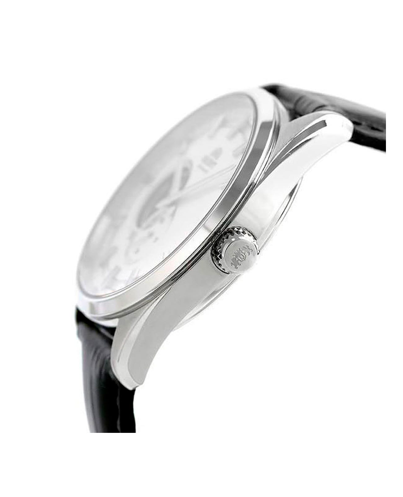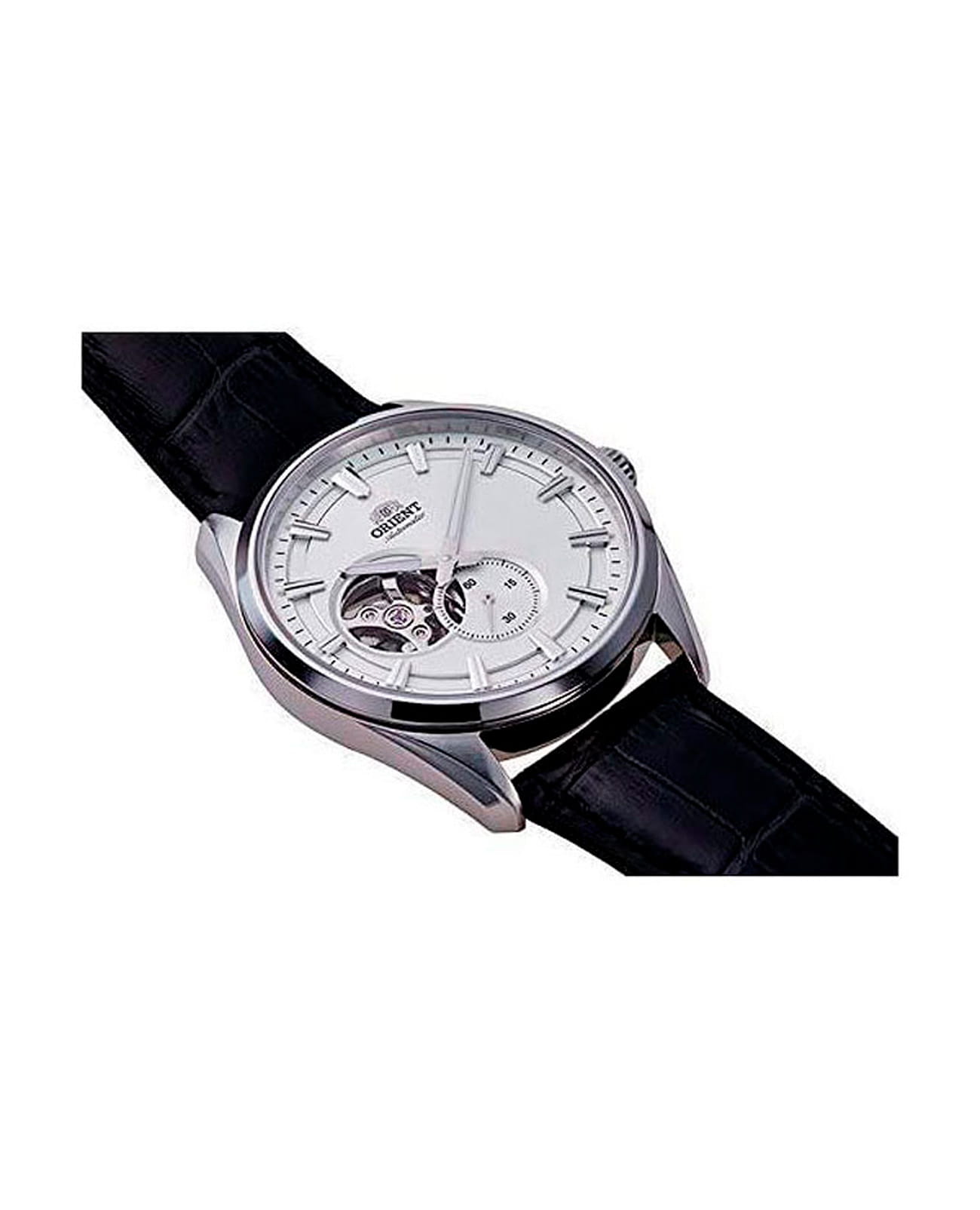 Часы Orient RA-AR0003S представляют собой стильную модель из коллекции Contemporary, сочетающую в себе классический дизайн и современные технологии. Это мужские механические часы с автоподзаводом, оснащённые калибром F6T22, который обеспечивает точность хода в пределах +25/-15 секунд в сутки и запас хода до 40 часов. Часы также поддерживают функцию ручного подзавода и остановки секундной стрелки (hacking stop), что позволяет точно синхронизировать время. Корпус часов выполнен из нержавеющей стали и имеет диаметр 40,8 мм при толщине 10,9 мм. Водонепроницаемость модели составляет 50 метров, что защищает часы от случайных брызг или капель дождя, но не предназначено для плавания или дайвинга. Часы оснащены сапфировым стекломСапфировое стеклоПрочный и надёжный материал из кристалла сапфира синтетического происхождения, характеризующийся особой твёрдостью и устойчивостью к царапинам и повреждениям., устойчивым к царапинам, и винтовой задней крышкой с прозрачным окном, позволяющим наблюдать за работой механизма. Циферблат выполнен в белом цвете с полускелетонным дизайном, который открывает вид на механизм в области 9 часов. На циферблате расположены светящиеся стрелки с люминесцентным покрытиемЛюминесцентное покрытиеПозволяет считывать показания времени в темноте. Производители наносят на стрелки, часовые индексы, безель или поверхность циферблата светонакопительный состав, дающий холодное свечение., обеспечивающие хорошую видимость в темноте. Также предусмотрено окно малой секундной стрелки на позиции 6 часов, что добавляет часам уникальный и стильный вид. Браслет часов изготовлен из чёрной кожи, что придаёт часам классический и элегантный вид. Застёжка выполнена в виде стандартной конструкции.