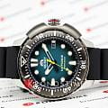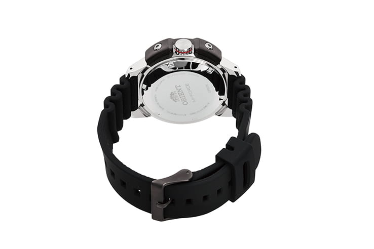 Мужские механические часы с автоподзаводом. Калибр механизма F6722 на 22 камнях. Частота 21 600 полуколебаний в час. Запас хода 40 часов. Центральные часовая, минутная и секундная стрелки. Апертура даты в позиции 3 часов. Синий циферблат. Люминесцентные стрелки и часовые индексы. Круглый корпус выполнен из нержавеющей стали с частичным черным PVD покрытием по безелю. Диаметр корпуса составляет 45 мм. Заводная головка с защитой. Черный каучуковый ремешок, стандартная застежка. Устойчивое к возникновению царапин сапфировое стекло с антибликовым покрытием. Водостойкость WR 200 (погружение с аквалангом).