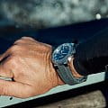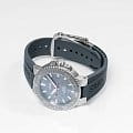 Многокомпонентный корпус из нержавеющей стали, керамический безельБезельВнешний ободок, закрепляющий стекло. В спортивных часах так называется поворотное кольцо с делениями на циферблате, выполняет роль таймера – замеряет отрезки времени на шкале. Неподвижный безель – элемент декора. Однонаправленно вращающийся безель на дайверских часах позволяет фиксировать моменты погружения и выныривания на поверхность. с минутной шкалой. Сапфировое стеклоСапфировое стеклоПрочный и надёжный материал из кристалла сапфира синтетического происхождения, характеризующийся особой твёрдостью и устойчивостью к царапинам и повреждениям., выпуклое с обеих сторон, внутреннее антибликовое покрытие. Стрелки и метки с люминесцентным покрытиемЛюминесцентное покрытиеПозволяет считывать показания времени в темноте. Производители наносят на стрелки, часовые индексы, безель или поверхность циферблата светонакопительный состав, дающий холодное свечение.. Завинчивающаяся прозрачная задняя крышка из минерального стеклаМинеральное стеклоМинеральное стекло представляет собой искусственно выращенный минерал кварца. Такое стекло отличается особой устойчивостью к повреждениям и царапинам. Уступает по некоторым качествам сапфировому стеклу.. Каучуковый ремень.