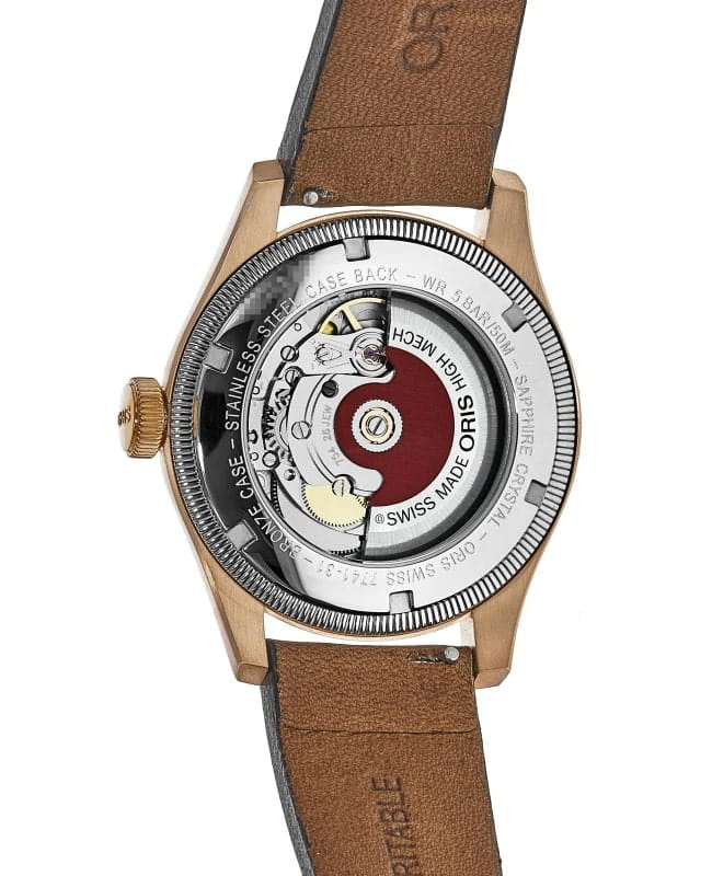 Многокомпонентный бронзовый корпус, стальная задняя крышка корпуса. Сапфировое стеклоСапфировое стеклоПрочный и надёжный материал из кристалла сапфира синтетического происхождения, характеризующийся особой твёрдостью и устойчивостью к царапинам и повреждениям., выпуклое с обеих сторон, внутреннее антибликовое покрытие. Нержавеющая сталь, завинчивающаяся прозрачная задняя крышка из минерального стеклаМинеральное стеклоМинеральное стекло представляет собой искусственно выращенный минерал кварца. Такое стекло отличается особой устойчивостью к повреждениям и царапинам. Уступает по некоторым качествам сапфировому стеклу.. Стрелки с люминесцентным покрытиемЛюминесцентное покрытиеПозволяет считывать показания времени в темноте. Производители наносят на стрелки, часовые индексы, безель или поверхность циферблата светонакопительный состав, дающий холодное свечение.. Кожаный ремень.