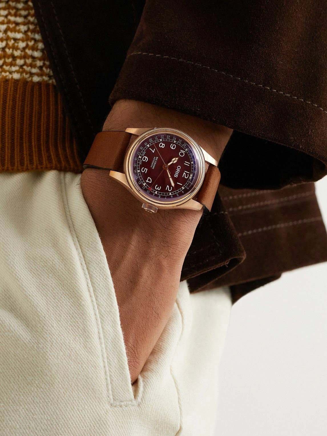 Модель Big Crown Pointer Date, ставшая иконой Oris в 1938 году, теперь имеет циферблат цвета бордо. Этот нестареющий дизайн включает в себя огромную крупную головку и красную стрелку даты с полумесяцем. Фирменный образец швейцарского часового искусства.