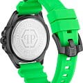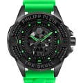 Эти необычные часы, воплощающие в себе уникальное сочетание узнаваемости бренда и непредсказуемости, каждый день будут напоминать вам о том, что нет таких целей, которых вы не смогли бы достичь. Мужские часы с японским кварцевым механизмом. Стальной корпус с чёрным IP-покрытиемIP-покрытиеМетод ионного напыления. Демонстрирует повышенную устойчивость к истиранию, окислению и химическим веществам. Под воздействием высокого давления и температуры около 1500°C молекулы металла надёжно соединяются с частицами корпуса часов.. БезельБезельВнешний ободок, закрепляющий стекло. В спортивных часах так называется поворотное кольцо с делениями на циферблате, выполняет роль таймера – замеряет отрезки времени на шкале. Неподвижный безель – элемент декора. Однонаправленно вращающийся безель на дайверских часах позволяет фиксировать моменты погружения и выныривания на поверхность. украшен шестиугольными логотипами бренда, расположенными симметрично слева и справа, сверху украшен символичным логотипом Philipp Plein, а снизу украшен названием коллекции ''The Skull''. Метки в виде штрихов. Высокопрочное минеральное стеклоМинеральное стеклоМинеральное стекло представляет собой искусственно выращенный минерал кварца. Такое стекло отличается особой устойчивостью к повреждениям и царапинам. Уступает по некоторым качествам сапфировому стеклу.. Граненая заводная головка с защитой. Зелёный силиконовый ремешок с классической застежкой украшен объемным черепом и стальной вставкой. Фирменная дизайнерская упаковка.