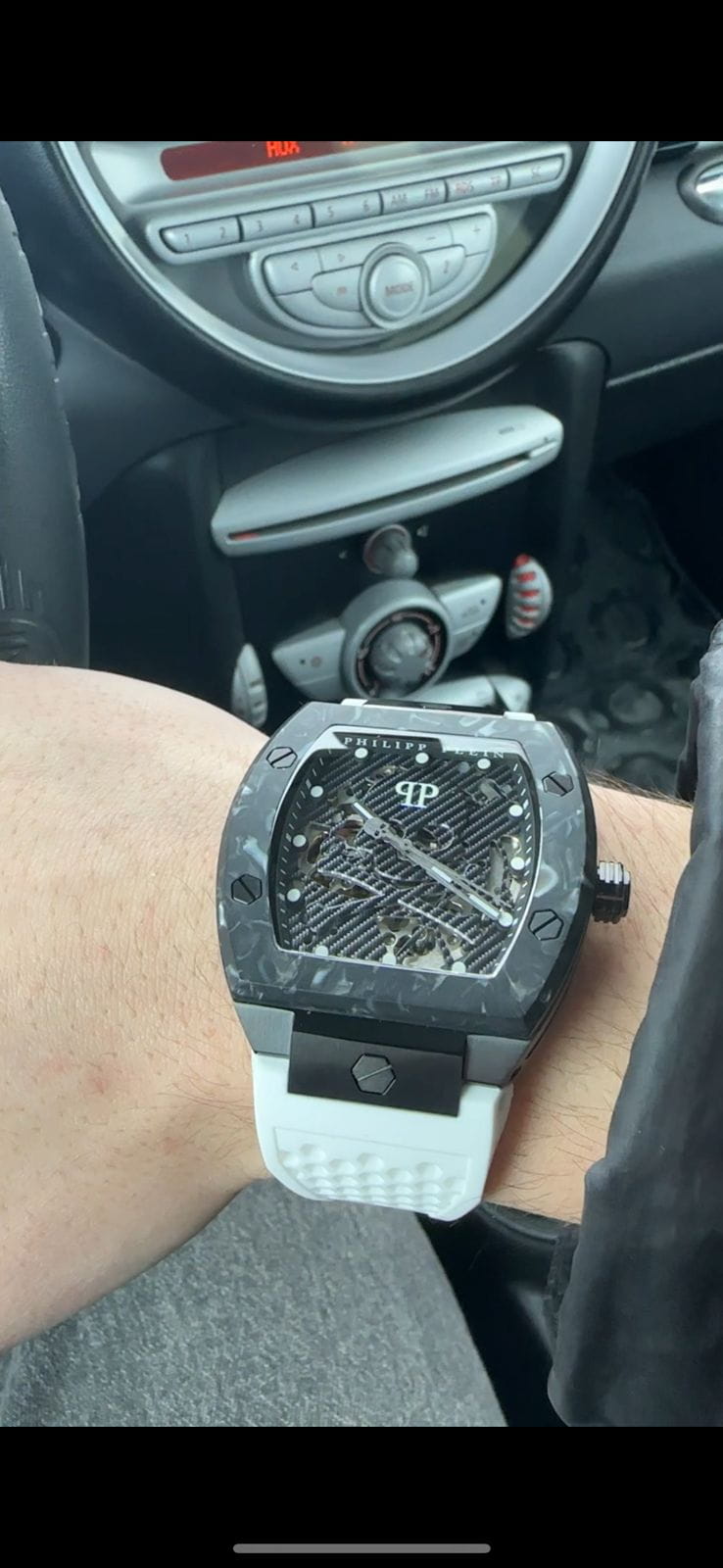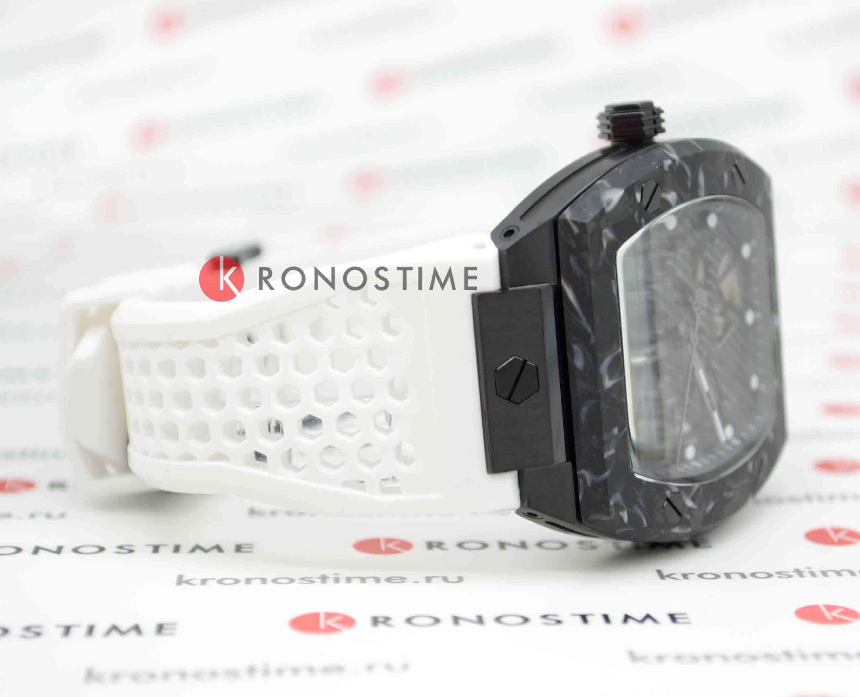 Механические мужские часы-скелетоны с минеральным стекломМинеральное стеклоМинеральное стекло представляет собой искусственно выращенный минерал кварца. Такое стекло отличается особой устойчивостью к повреждениям и царапинам. Уступает по некоторым качествам сапфировому стеклу. Philipp Plein The Skeleton Sport Master PWBAA1122, кварцевый механизм с высокой точностью. Класс водозащиты: 50 метров, позволит защитить корпус от случайных брызг или капель дождя. Корпус часов изготовлен из стали с IP-покрытиемIP-покрытиеМетод ионного напыления. Демонстрирует повышенную устойчивость к истиранию, окислению и химическим веществам. Под воздействием высокого давления и температуры около 1500°C молекулы металла надёжно соединяются с частицами корпуса часов.. Силиконовый ремешок на стандартной застёжке. Высококачественный силиконовый браслет обеспечивает высокий уровень комфорта. Стрелки и метки с люминесцентным покрытиемЛюминесцентное покрытиеПозволяет считывать показания времени в темноте. Производители наносят на стрелки, часовые индексы, безель или поверхность циферблата светонакопительный состав, дающий холодное свечение..