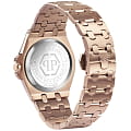 Женские кварцевые часы c кристаллами Preciosa Philipp Plein Extreme Lady PWJAA0522, кварцевый механизм с высокой точностью. Класс водозащиты: 50 метров, позволит защитить корпус от случайных брызг или капель дождя. Корпус часов изготовлен из стали с IP-покрытиемIP-покрытиеМетод ионного напыления. Демонстрирует повышенную устойчивость к истиранию, окислению и химическим веществам. Под воздействием высокого давления и температуры около 1500°C молекулы металла надёжно соединяются с частицами корпуса часов. цвета розовое золото. Прочное минеральное стеклоМинеральное стеклоМинеральное стекло представляет собой искусственно выращенный минерал кварца. Такое стекло отличается особой устойчивостью к повреждениям и царапинам. Уступает по некоторым качествам сапфировому стеклу. устойчивое к мелким механическим повреждениям. Стальной браслет с IP-покрытиемIP-покрытиеМетод ионного напыления. Демонстрирует повышенную устойчивость к истиранию, окислению и химическим веществам. Под воздействием высокого давления и температуры около 1500°C молекулы металла надёжно соединяются с частицами корпуса часов. цвета розовое золото шириной 23 мм, раскладная застёжкаРаскладная застёжкаТакой тип застёжки используется только на браслетах из металла. Она никогда не раскрывается полностью, происходит разделение на 2 и более частей. Раскладывающая застёжка снизит вероятность потери часов к минимуму..