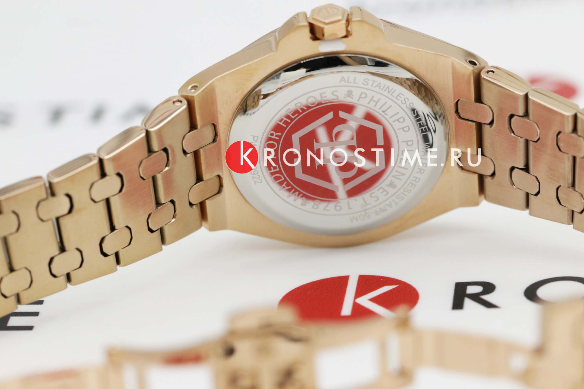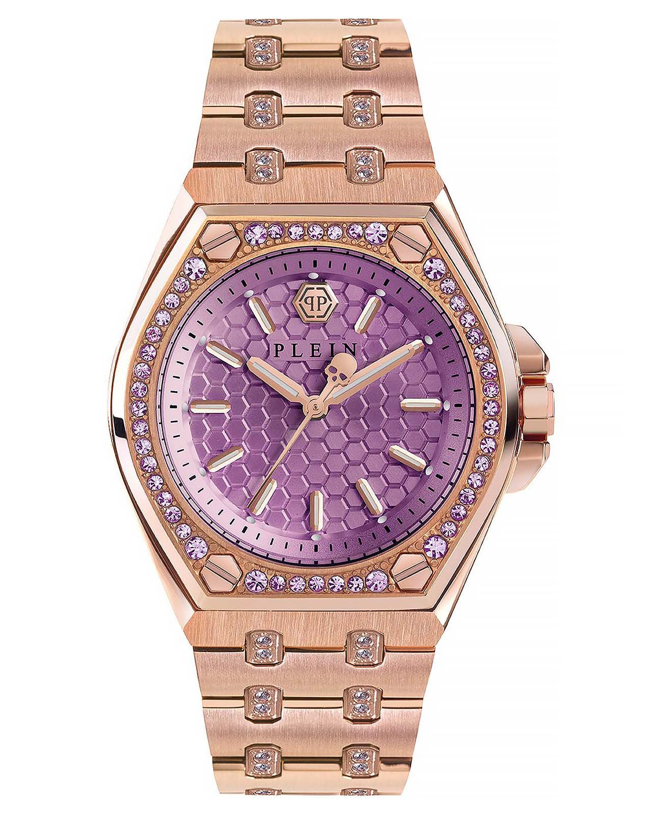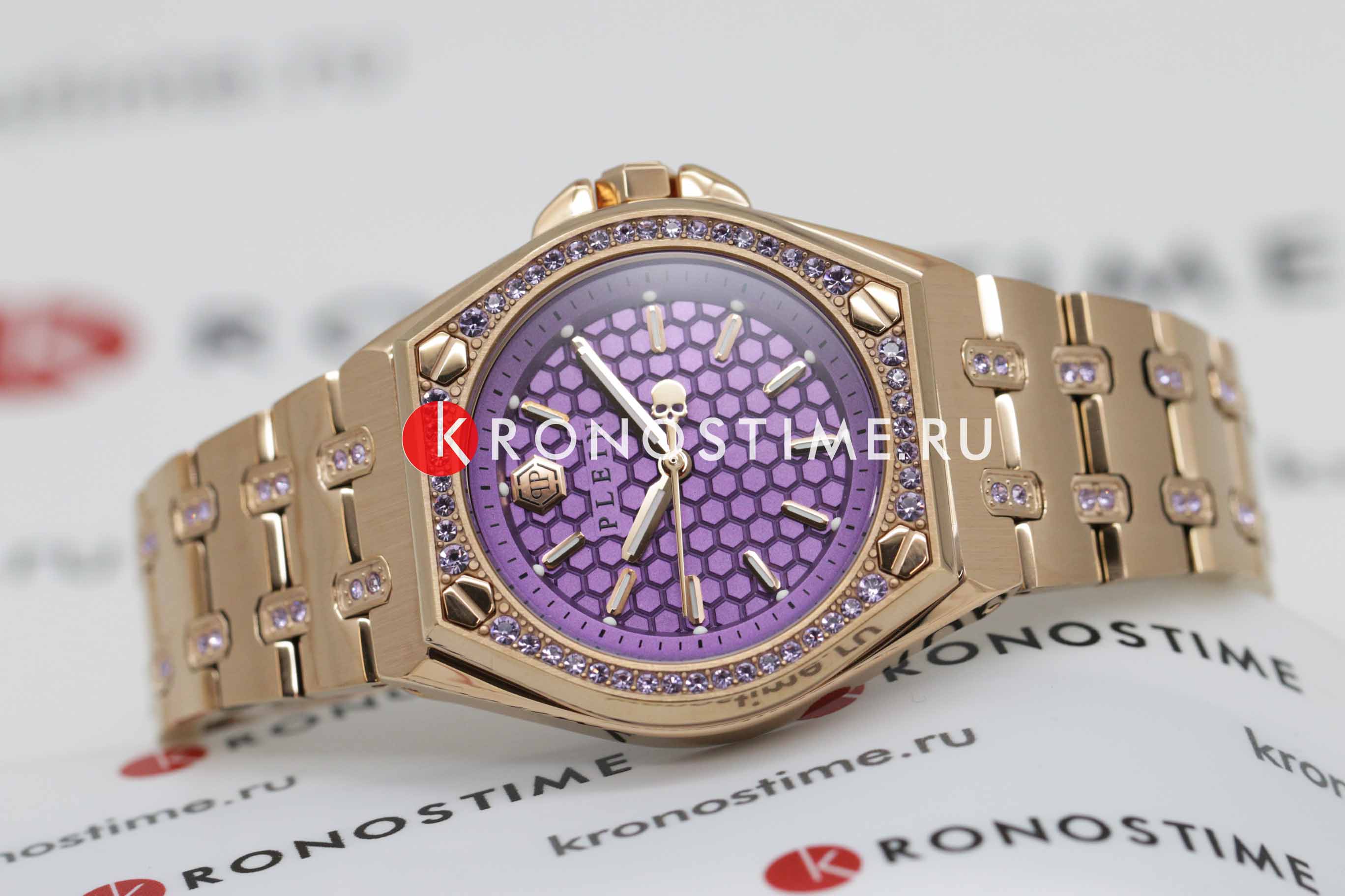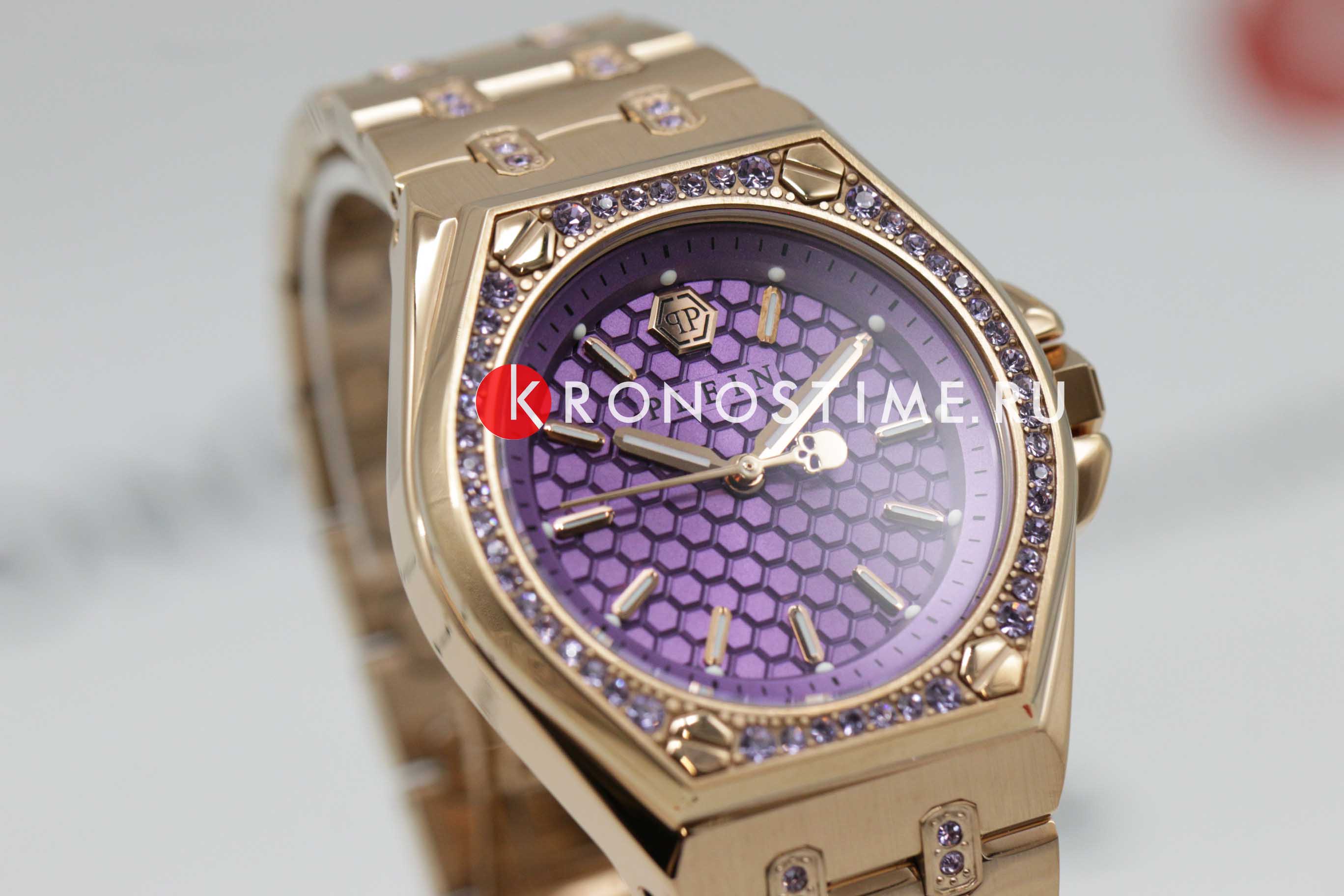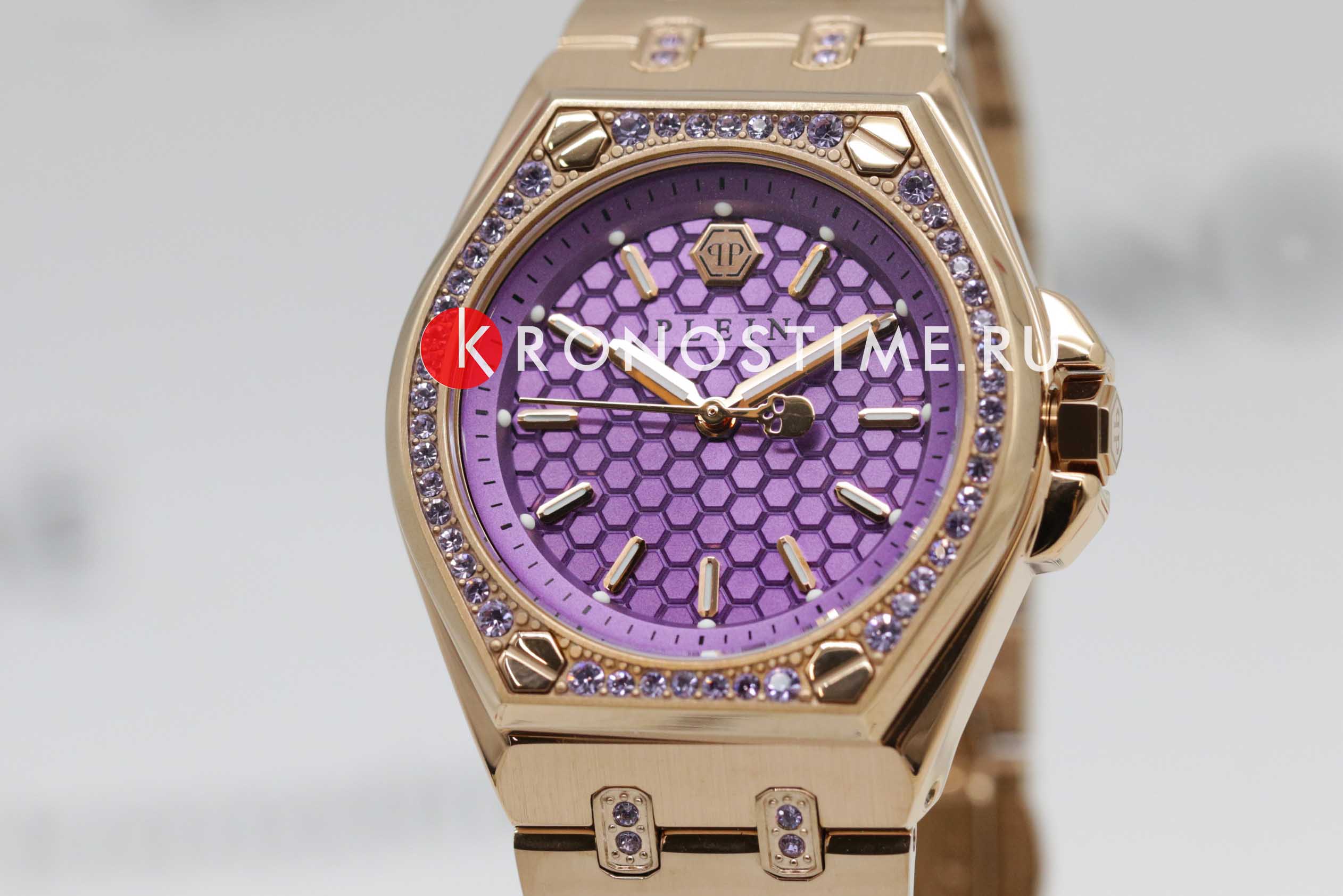 Женские немецкие кварцевые часы Philipp Plein Extreme Lady PWJAA0922, кварцевый механизм с высокой точностью. Класс водозащиты: 50 метров, позволит защитить корпус от случайных брызг или капель дождя. Корпус часов изготовлен из стали с IP-покрытиемIP-покрытиеМетод ионного напыления. Демонстрирует повышенную устойчивость к истиранию, окислению и химическим веществам. Под воздействием высокого давления и температуры около 1500°C молекулы металла надёжно соединяются с частицами корпуса часов. цвета розовое золото. Прочное минеральное стеклоМинеральное стеклоМинеральное стекло представляет собой искусственно выращенный минерал кварца. Такое стекло отличается особой устойчивостью к повреждениям и царапинам. Уступает по некоторым качествам сапфировому стеклу. устойчивое к мелким механическим повреждениям. Застёжка бабочка с кнопкамиЗастёжка "бабочка"Такой вид застёжки дополняется предохранителями, помогающими избежать случайного раскрытия браслета. Обладают изящным исполнением.