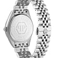 Philipp Plein DATE SUPERLATIVE GENT PWMFA0125 - это дерзкие и бескомпромиссные часы, воплощающие бунтарский дух бренда. Диаметр круглого корпуса из прочной нержавеющей стали равен 41 мм. Стальной браслет на застёжке «бабочка» с кнопкамиЗастёжка "бабочка"Такой вид застёжки дополняется предохранителями, помогающими избежать случайного раскрытия браслета. Обладают изящным исполнением. обеспечивает надёжную фиксацию и комфортное ношение. Метки в виде кристаллов Preciosa. Минеральное стеклоМинеральное стеклоМинеральное стекло представляет собой искусственно выращенный минерал кварца. Такое стекло отличается особой устойчивостью к повреждениям и царапинам. Уступает по некоторым качествам сапфировому стеклу. защищает циферблат от царапин. Люминесцентное покрытиеЛюминесцентное покрытиеПозволяет считывать показания времени в темноте. Производители наносят на стрелки, часовые индексы, безель или поверхность циферблата светонакопительный состав, дающий холодное свечение. стрелок и меток позволит следить за временем даже в полной темноте. Граненая заводная головка. Влагозащита: 50 метров, позволит защитить корпус от случайных брызг или капель дождя. Идеальный аксессуар для тех, кто ценит индивидуальность и не боится выделяться из толпы.