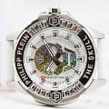 Яркие женские часы с минеральным стекломМинеральное стеклоМинеральное стекло представляет собой искусственно выращенный минерал кварца. Такое стекло отличается особой устойчивостью к повреждениям и царапинам. Уступает по некоторым качествам сапфировому стеклу. Philipp Plein The Skull PWNAA1023, кварцевый механизм с высокой точностью. Класс водозащиты: 50 метров, позволит защитить корпус от случайных брызг или капель дождя. Корпус часов изготовлен из стали. Круглый стальной корпус украшен кристаллами Swarovski. Циферблат с метками в виде точек украшенных кристаллами Swarovski, дополнен черепом из кристаллов. Шестигранная заводная головка с защитой. Силиконовый ремешок украшен объемным черепом.