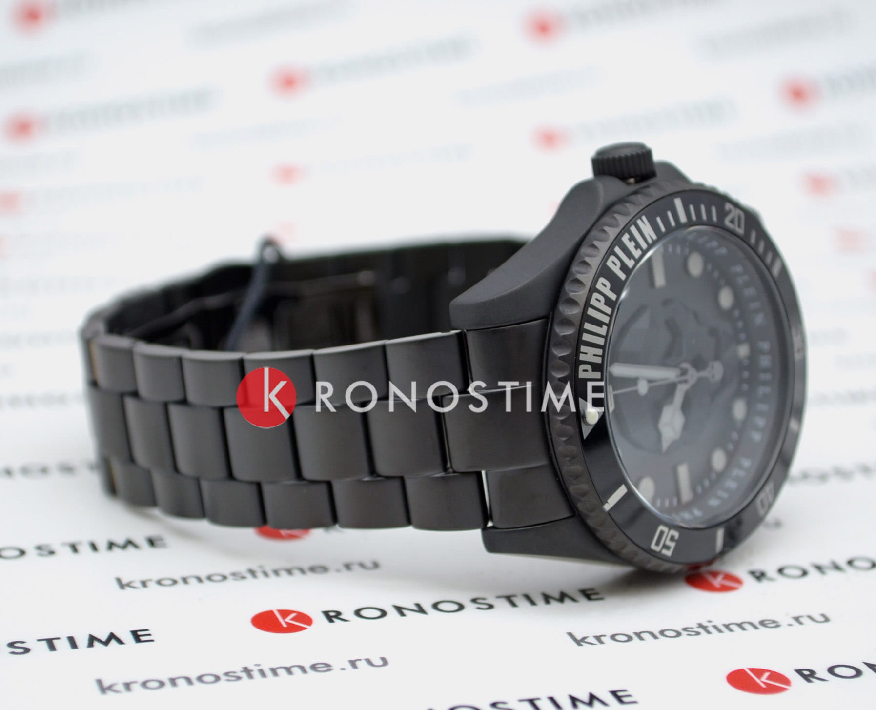 Яркие мужские часы с минеральным стекломМинеральное стеклоМинеральное стекло представляет собой искусственно выращенный минерал кварца. Такое стекло отличается особой устойчивостью к повреждениям и царапинам. Уступает по некоторым качествам сапфировому стеклу. Philipp Plein The Skull PWOAA0922, кварцевый механизм с высокой точностью. Класс водозащиты: 50 метров, позволит защитить корпус от случайных брызг или капель дождя. Корпус часов изготовлен из стали. Циферблат с метками в виде штрихов и точек украшен трехмерным граненым черепом и логотипом. Шестигранная заводная головка с защитой. Застёжка бабочка с кнопкамиЗастёжка "бабочка"Такой вид застёжки дополняется предохранителями, помогающими избежать случайного раскрытия браслета. Обладают изящным исполнением. .
