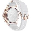 Philipp Plein The $kull Chrono PWWFA0325 - яркие часы-хронографХронографФункция позволяет измерять отрезки времени с особой точностью: часы, минуты, секунды. Верным признаком хронографа является наличие на циферблате 3 дополнительных окошек-счётчиков. в революционном дизайне несомненно добавят вам выразительности и станут главным акцентом вашего стильного образа. Мужские кварцевые часы с высокой точностью. Круглый стальной корпус с PVD-покрытиемPVDУльтратонкое покрытие наносится в технике вакуумного напыления, сочетает в себе нитрид титана особой прочности со слоем золота или оксида хрома. Несёт в себе декоративную или защитную функцию. цвета розового золота, диаметром 44 мм. Метки в виде штрихов. Минеральное стеклоМинеральное стеклоМинеральное стекло представляет собой искусственно выращенный минерал кварца. Такое стекло отличается особой устойчивостью к повреждениям и царапинам. Уступает по некоторым качествам сапфировому стеклу. защищает циферблат от царапин. Люминесцентное покрытиеЛюминесцентное покрытиеПозволяет считывать показания времени в темноте. Производители наносят на стрелки, часовые индексы, безель или поверхность циферблата светонакопительный состав, дающий холодное свечение. стрелок и меток позволит следить за временем даже в полной темноте. Окошко даты находится в положении 4 часа. Силиконовый ремешок на стандартной застёжке, обеспечивает комфортное ношение. Граненая заводная головка. Влагозащита: 50 метров, позволит защитить корпус от случайных брызг или капель дождя. Идеальный аксессуар для тех, кто ценит индивидуальность и не боится выделяться из толпы.