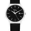 Элегантные наручные мужские часы.  Корпус выполнен из нержавеющей стали с PVD покрытием. Ремешок выполнен из натуральной кожи черного цвета. Сапфировое стекло устойчиво к царапинам. Водонепроницаемость 50М.