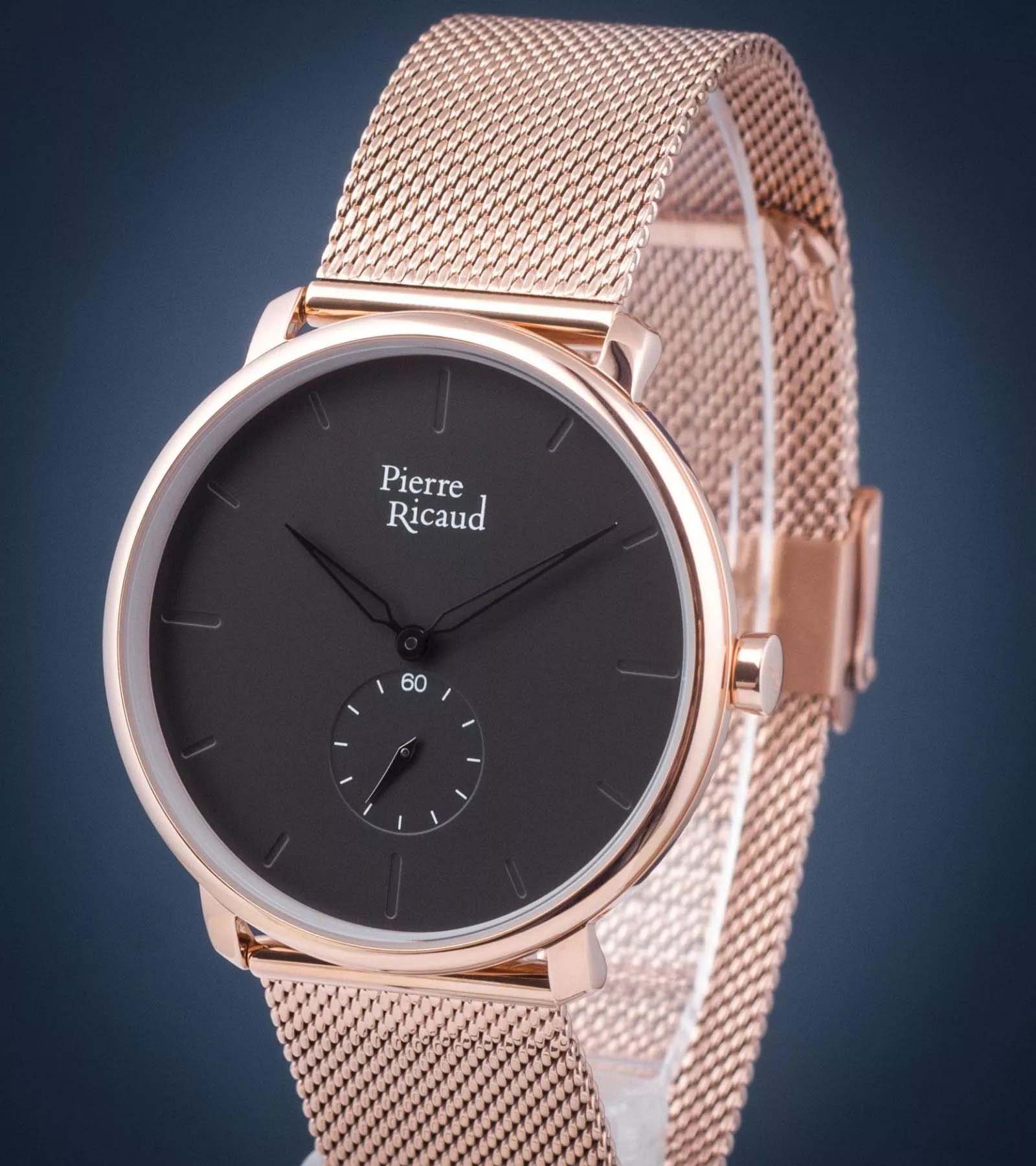 Мужские часы с минеральным стекломМинеральное стеклоМинеральное стекло представляет собой искусственно выращенный минерал кварца. Такое стекло отличается особой устойчивостью к повреждениям и царапинам. Уступает по некоторым качествам сапфировому стеклу. Pierre Ricaud P97168.9116Q, кварцевый механизм с высокой точностью. Класс водозащиты: 30 метров, позволит защитить корпус от случайных брызг или капель дождя. Корпус часов изготовлен из стали с IP-покрытиемIP-покрытиеМетод ионного напыления. Демонстрирует повышенную устойчивость к истиранию, окислению и химическим веществам. Под воздействием высокого давления и температуры около 1500°C молекулы металла надёжно соединяются с частицами корпуса часов.. Стальной браслет на раскладной застёжкеРаскладная застёжкаТакой тип застёжки используется только на браслетах из металла. Она никогда не раскрывается полностью, происходит разделение на 2 и более частей. Раскладывающая застёжка снизит вероятность потери часов к минимуму. с IP-покрытиемIP-покрытиеМетод ионного напыления. Демонстрирует повышенную устойчивость к истиранию, окислению и химическим веществам. Под воздействием высокого давления и температуры около 1500°C молекулы металла надёжно соединяются с частицами корпуса часов.. Вынесенная секундная стрелка.