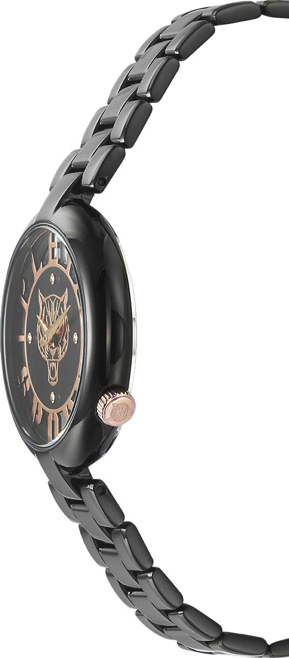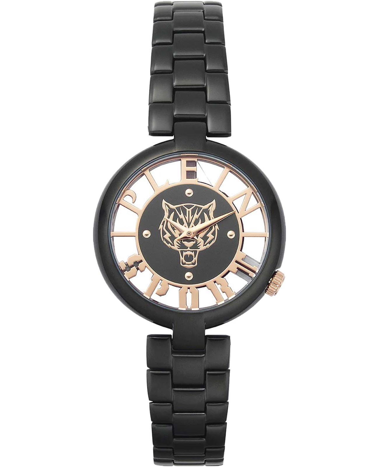 Немецкие женские кварцевые часы с минеральным стекломМинеральное стеклоМинеральное стекло представляет собой искусственно выращенный минерал кварца. Такое стекло отличается особой устойчивостью к повреждениям и царапинам. Уступает по некоторым качествам сапфировому стеклу. Plein Sport Tiger Luxe PSMBA0523, кварцевый механизм с высокой точностью. Класс водозащиты: 50 метров, позволит защитить корпус от случайных брызг или капель дождя. Корпус часов изготовлен из стали с IP-покрытиемIP-покрытиеМетод ионного напыления. Демонстрирует повышенную устойчивость к истиранию, окислению и химическим веществам. Под воздействием высокого давления и температуры около 1500°C молекулы металла надёжно соединяются с частицами корпуса часов.. Стальной браслет на раскладной застёжкеРаскладная застёжкаТакой тип застёжки используется только на браслетах из металла. Она никогда не раскрывается полностью, происходит разделение на 2 и более частей. Раскладывающая застёжка снизит вероятность потери часов к минимуму. с IP-покрытиемIP-покрытиеМетод ионного напыления. Демонстрирует повышенную устойчивость к истиранию, окислению и химическим веществам. Под воздействием высокого давления и температуры около 1500°C молекулы металла надёжно соединяются с частицами корпуса часов..