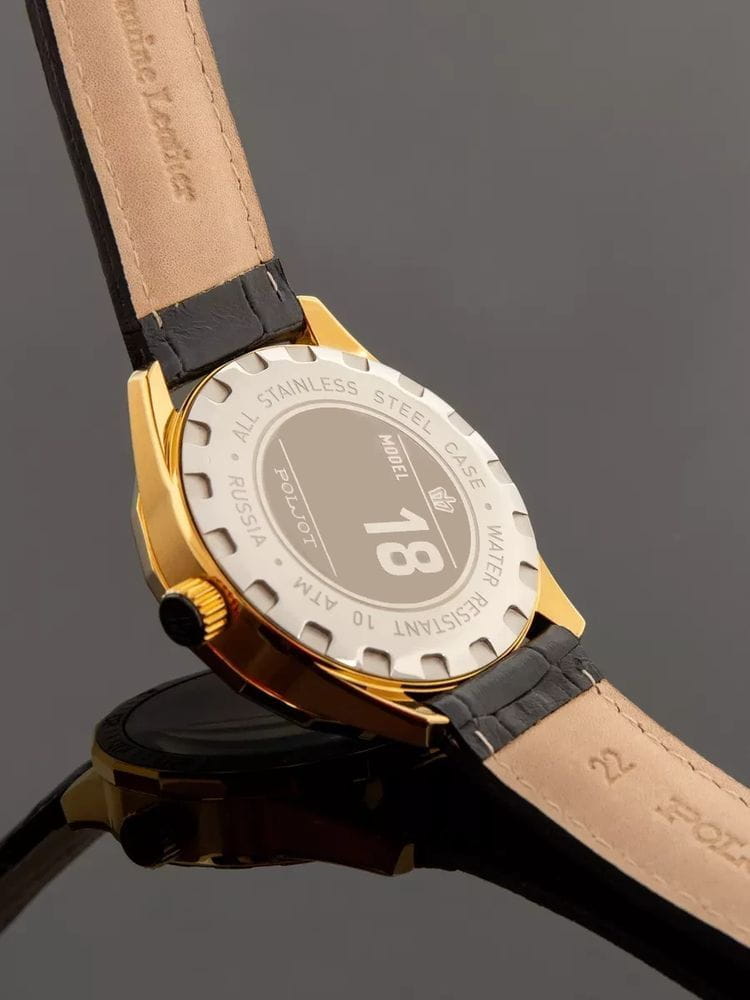 Poljot NH35A.186264 — надёжные механические мужские часы с автоподзаводом, сочетающие техническую точность и выразительный спортивный стиль. Корпус из нержавеющей стали с PVD-покрытиемPVDУльтратонкое покрытие наносится в технике вакуумного напыления, сочетает в себе нитрид титана особой прочности со слоем золота или оксида хрома. Несёт в себе декоративную или защитную функцию. подчёркивает прочность конструкции, а насыщенный циферблат с акцентами на стрелках и метках придаёт модели динамичный и современный облик. БезельБезельВнешний ободок, закрепляющий стекло. В спортивных часах так называется поворотное кольцо с делениями на циферблате, выполняет роль таймера – замеряет отрезки времени на шкале. Неподвижный безель – элемент декора. Однонаправленно вращающийся безель на дайверских часах позволяет фиксировать моменты погружения и выныривания на поверхность. с PVD-покрытиемPVDУльтратонкое покрытие наносится в технике вакуумного напыления, сочетает в себе нитрид титана особой прочности со слоем золота или оксида хрома. Несёт в себе декоративную или защитную функцию.. Внутри установлен проверенный японский механизм SEIKO NH35, обеспечивающий стабильную работу и плавный ход секундной стрелки. Окно даты добавляет функциональности, а широкие метки с люминесцентным покрытиемЛюминесцентное покрытиеПозволяет считывать показания времени в темноте. Производители наносят на стрелки, часовые индексы, безель или поверхность циферблата светонакопительный состав, дающий холодное свечение. обеспечивают отличную читаемость даже в темноте. Прочное минеральное стеклоМинеральное стеклоМинеральное стекло представляет собой искусственно выращенный минерал кварца. Такое стекло отличается особой устойчивостью к повреждениям и царапинам. Уступает по некоторым качествам сапфировому стеклу. защищает циферблат от царапин, а ремешок из натуральной кожи с контрастной прострочкой гарантирует комфорт и надёжную посадку. Poljot — часы с характером, созданные для тех, кто ценит точность, качество и спортивную уверенность в каждой детали.