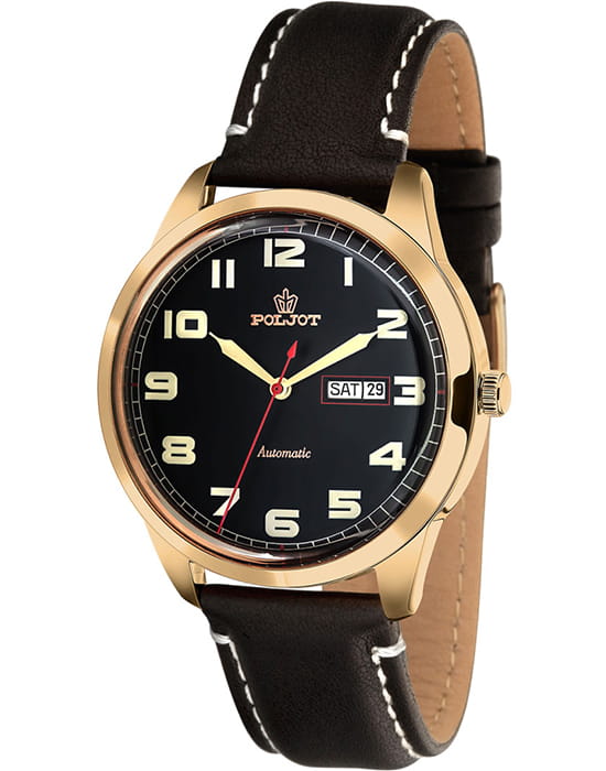 Poljot 8205.589025 — классические механические мужские часы с автоподзаводом, сочетающие традиции отечественного часового производства и лаконичный современный стиль. Корпус из нержавеющей стали с PVD-покрытиемPVDУльтратонкое покрытие наносится в технике вакуумного напыления, сочетает в себе нитрид титана особой прочности со слоем золота или оксида хрома. Несёт в себе декоративную или защитную функцию.  подчёркивает надёжность и сдержанную элегантность модели, а глубокий циферблат с минималистичной разметкой, аккуратным окном даты и секундным акцентом придаёт образу динамичность. Механизм с автоподзаводом обеспечивает стабильную работу и плавный ход стрелок, подчёркивая инженерную точность исполнения. Прочное минеральное стеклоМинеральное стеклоМинеральное стекло представляет собой искусственно выращенный минерал кварца. Такое стекло отличается особой устойчивостью к повреждениям и царапинам. Уступает по некоторым качествам сапфировому стеклу. защищает циферблат, а ремешок из натуральной кожи с классической текстурой крокодила обеспечивает комфорт и благородный внешний вид. Poljot — воплощение надёжности, традиций и мужской элегантности, созданное для тех, кто ценит качество и уверенность в каждой детали.