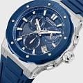 Мужские кварцевые часы Quantum из коллекции Hunter — круглый корпус размером 46 мм из нержавеющей стали, оснащённый функциями хронографаХронографФункция позволяет измерять отрезки времени с особой точностью: часы, минуты, секунды. Верным признаком хронографа является наличие на циферблате 3 дополнительных окошек-счётчиков., суточника и окошком даты. БезельБезельВнешний ободок, закрепляющий стекло. В спортивных часах так называется поворотное кольцо с делениями на циферблате, выполняет роль таймера – замеряет отрезки времени на шкале. Неподвижный безель – элемент декора. Однонаправленно вращающийся безель на дайверских часах позволяет фиксировать моменты погружения и выныривания на поверхность. из нержавеющей стали с PVD-покрытиемPVDУльтратонкое покрытие наносится в технике вакуумного напыления, сочетает в себе нитрид титана особой прочности со слоем золота или оксида хрома. Несёт в себе декоративную или защитную функцию.. Стекло — минеральноеМинеральное стеклоМинеральное стекло представляет собой искусственно выращенный минерал кварца. Такое стекло отличается особой устойчивостью к повреждениям и царапинам. Уступает по некоторым качествам сапфировому стеклу. с антибликовым покрытием. Механизм — японский кварцевый Seiko. Водонепроницаемость 100 м. Ремешок — синий силиконовый на стандартной застёжке. Идеальный выбор для тех, кто ценит турецкий дизайн и функциональный спортивный стиль.