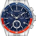 Мужские наручные часы-хронографХронографФункция позволяет измерять отрезки времени с особой точностью: часы, минуты, секунды. Верным признаком хронографа является наличие на циферблате 3 дополнительных окошек-счётчиков. Quantum PWG1036.390, кварцевый механизм с высокой точностью. Минеральное стеклоМинеральное стеклоМинеральное стекло представляет собой искусственно выращенный минерал кварца. Такое стекло отличается особой устойчивостью к повреждениям и царапинам. Уступает по некоторым качествам сапфировому стеклу. устойчивое к появлению царапин, обладающее высокой прозрачностью. Класс водозащиты: 100 метров, позволит плавать, нырять и заниматься другими водными видами спорта. Корпус часов изготовлен из нержавеющей стали. Стрелки и метки с люминесцентным покрытиемЛюминесцентное покрытиеПозволяет считывать показания времени в темноте. Производители наносят на стрелки, часовые индексы, безель или поверхность циферблата светонакопительный состав, дающий холодное свечение.. БезельБезельВнешний ободок, закрепляющий стекло. В спортивных часах так называется поворотное кольцо с делениями на циферблате, выполняет роль таймера – замеряет отрезки времени на шкале. Неподвижный безель – элемент декора. Однонаправленно вращающийся безель на дайверских часах позволяет фиксировать моменты погружения и выныривания на поверхность. с PVD-покрытиемPVDУльтратонкое покрытие наносится в технике вакуумного напыления, сочетает в себе нитрид титана особой прочности со слоем золота или оксида хрома. Несёт в себе декоративную или защитную функцию.. Стальной браслет на раскладной застёжкеРаскладная застёжкаТакой тип застёжки используется только на браслетах из металла. Она никогда не раскрывается полностью, происходит разделение на 2 и более частей. Раскладывающая застёжка снизит вероятность потери часов к минимуму..