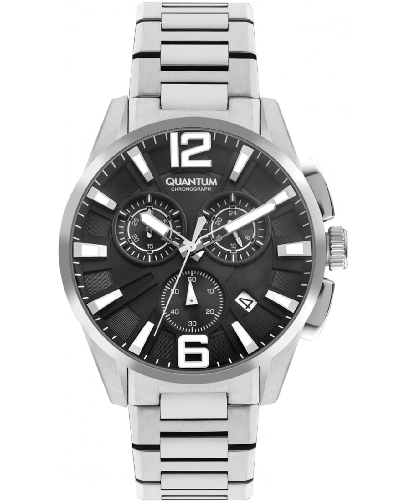 Мужские наручные часы-хронографХронографФункция позволяет измерять отрезки времени с особой точностью: часы, минуты, секунды. Верным признаком хронографа является наличие на циферблате 3 дополнительных окошек-счётчиков. Quantum PWG1077.350, кварцевый механизм с высокой точностью. Минеральное стеклоМинеральное стеклоМинеральное стекло представляет собой искусственно выращенный минерал кварца. Такое стекло отличается особой устойчивостью к повреждениям и царапинам. Уступает по некоторым качествам сапфировому стеклу. устойчивое к появлению царапин, обладающее высокой прозрачностью. Класс водозащиты: 100 метров, позволит плавать, нырять и заниматься другими водными видами спорта. Корпус часов изготовлен из нержавеющей стали. Стрелки и метки с люминесцентным покрытиемЛюминесцентное покрытиеПозволяет считывать показания времени в темноте. Производители наносят на стрелки, часовые индексы, безель или поверхность циферблата светонакопительный состав, дающий холодное свечение..Стальной браслет на раскладной застёжкеРаскладная застёжкаТакой тип застёжки используется только на браслетах из металла. Она никогда не раскрывается полностью, происходит разделение на 2 и более частей. Раскладывающая застёжка снизит вероятность потери часов к минимуму..