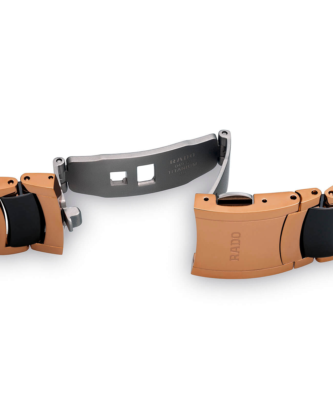 Наручные часы представляют собой воплощение классики и лаконичного дизайна, это идеальный вариант для поддержания солидного имиджа. Они выполнены из нержавеющей стали и высокотехнологичной керамикиВысокотехнологичная керамикаИнновационный запатентованный Rado материал с гладкой или матовой поверхностью. Керамика за счёт кристаллической структуры обладает повышенной устойчивостью от возникновения царапин. Материал способен принимать температуру тела человека, обеспечивая невероятный комфорт при ношении., чёрные вставки привлекательно смотрятся. Минималистичный циферблат инкрустирован 4 бриллиантами в 0,009 карат. Кварцевый калибр ETA 956.112 с высокой точностью хода. Золотистое PVD-покрытиеPVDУльтратонкое покрытие наносится в технике вакуумного напыления, сочетает в себе нитрид титана особой прочности со слоем золота или оксида хрома. Несёт в себе декоративную или защитную функцию.. Сапфировое стекло противостоит образованию царапин на поверхности. Диаметр корпуса: 28 мм.