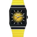 Универсальные механические часы с автоподзаводом Rado Anatom — это символ новаторского дизайна и максимального комфорта. Корпус размером 32,5 мм и толщиной 11,3 мм выполнен из высокотехнологичной керамикиВысокотехнологичная керамикаИнновационный запатентованный Rado материал с гладкой или матовой поверхностью. Керамика за счёт кристаллической структуры обладает повышенной устойчивостью от возникновения царапин. Материал способен принимать температуру тела человека, обеспечивая невероятный комфорт при ношении. и нержавеющей стали. Циферблат с градиентом от чёрного к лимонно-жёлтому оформлен накладными индексами и стрелками с люминесцентным покрытиемЛюминесцентное покрытиеПозволяет считывать показания времени в темноте. Производители наносят на стрелки, часовые индексы, безель или поверхность циферблата светонакопительный состав, дающий холодное свечение. Super-Luminova®, обеспечивающим отличную читаемость в темноте. Циферблат защищён сапфировым стекломСапфировое стеклоПрочный и надёжный материал из кристалла сапфира синтетического происхождения, характеризующийся особой твёрдостью и устойчивостью к царапинам и повреждениям. с металлизированным покрытием и симметричными фасками. В положении 12 часов расположен подвижной якорь — символ бренда, а в положении 6 часов — окошко даты. Механизм — автоматический с антимагнитной пружиной Nivachron™Nivachron™Специально разработанный инновационный сплав Nivachron™ повышает устойчивость часов к воздействию магнитных полей., отрегулированный в пяти положениях, с запасом хода 72 часа. Прозрачная задняя крышка с сапфировым стеклом позволяет наблюдать за работой механизма. Часы оснащены конусообразным каучуковым ремешком лимонно-жёлтого цвета и трёхсекционной застёжкой из матовой нержавеющей стали с крышкой из полированной керамики. Водонепроницаемость 50 м позволяет использовать часы в повседневных условиях. Гарантия — 2 года. Идеальный выбор для тех, кто ценит уникальный дизайн, комфорт и швейцарское качество.