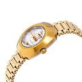Женские механические швейцарские часы с автоподзаводом Rado The Original R12416034, кварцевый механизм с высокой точностью. Сапфировое стеклоСапфировое стеклоПрочный и надёжный материал из кристалла сапфира синтетического происхождения, характеризующийся особой твёрдостью и устойчивостью к царапинам и повреждениям. устойчивое к появлению царапин, обладающее высокой прозрачностью. Корпус и браслет часов выполнены из нержавеющей стали c PVD-покрытиемPVDУльтратонкое покрытие наносится в технике вакуумного напыления, сочетает в себе нитрид титана особой прочности со слоем золота или оксида хрома. Несёт в себе декоративную или защитную функцию.. Циферблат инкрустирован бриллиантами. Класс водозащиты: 30 метров, позволит защитить корпус от случайных брызг или капель дождя. Браслет на раскладной застёжкеРаскладная застёжкаТакой тип застёжки используется только на браслетах из металла. Она никогда не раскрывается полностью, происходит разделение на 2 и более частей. Раскладывающая застёжка снизит вероятность потери часов к минимуму..