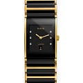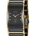 Женские часы Rado Integral R20788752 с надёжным кварцевым механизмом. Сапфировое стеклоСапфировое стеклоПрочный и надёжный материал из кристалла сапфира синтетического происхождения, характеризующийся особой твёрдостью и устойчивостью к царапинам и повреждениям. устойчивое к мелким механическим повреждениям. Корпус выполнен из нержавеющей стали с PVD-покрытиемPVDУльтратонкое покрытие наносится в технике вакуумного напыления, сочетает в себе нитрид титана особой прочности со слоем золота или оксида хрома. Несёт в себе декоративную или защитную функцию.. Класс водозащиты: 30 метров, позволит защитить корпус от случайных брызг или капель дождя. Циферблат декорирован 6 бриллиантами. Стальной браслет с PVD-покрытиемPVDУльтратонкое покрытие наносится в технике вакуумного напыления, сочетает в себе нитрид титана особой прочности со слоем золота или оксида хрома. Несёт в себе декоративную или защитную функцию. с вставками из высокотехнологичной керамикиВысокотехнологичная керамикаИнновационный запатентованный Rado материал с гладкой или матовой поверхностью. Керамика за счёт кристаллической структуры обладает повышенной устойчивостью от возникновения царапин. Материал способен принимать температуру тела человека, обеспечивая невероятный комфорт при ношении. на раскладной застёжкеРаскладная застёжкаТакой тип застёжки используется только на браслетах из металла. Она никогда не раскрывается полностью, происходит разделение на 2 и более частей. Раскладывающая застёжка снизит вероятность потери часов к минимуму.. Отображение даты в положении «6 часов».