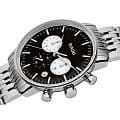 Классический хронографХронографФункция позволяет измерять отрезки времени с особой точностью: часы, минуты, секунды. Верным признаком хронографа является наличие на циферблате 3 дополнительных окошек-счётчиков. премиального характера имеет стильное серебристо-чёрное исполнение. Расцветка позволяет удачно комбинировать часы с любым образом. Швейцарский кварцевый механизм ETA E57.251 с абсолютной точностью хода. Сапфировое стекло с покрытием «антиблик». Корпус и браслет из хирургической стали 316L, устойчивой к коррозии. Водостойкость WR 50 – часы выдержат дождь и мойку машины. . Секундомер, окошко даты. Диаметр корпуса: 42 мм.