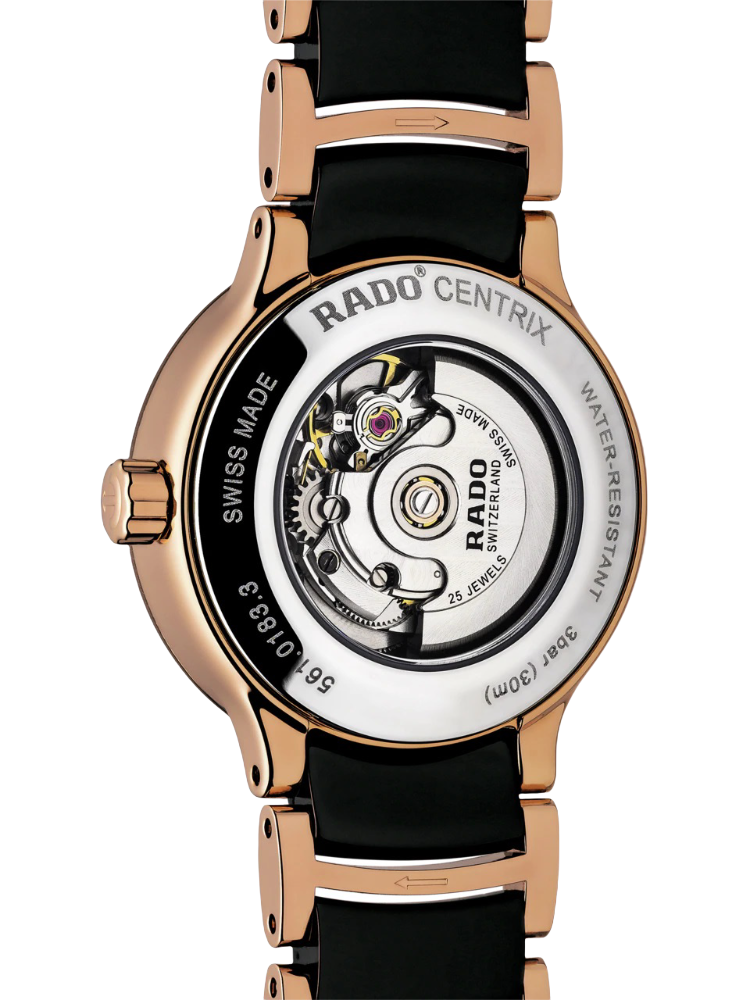 Изысканная модель в минималистичном исполнении грамотно завершит образ. Благодаря роскошному циферблату премиальный аксессуар сразу притягивает внимание, перед блеском 12 бриллиантов. Автоподзавод. Швейцарский калибр ETA 2671 имеет запас хода до 38 часов. Скелетонизированная задняя крышка стального корпуса. Сапфировое стекло. Браслет из нержавеющей стали с PVD-покрытиемPVDУльтратонкое покрытие наносится в технике вакуумного напыления, сочетает в себе нитрид титана особой прочности со слоем золота или оксида хрома. Несёт в себе декоративную или защитную функцию. и вставок из высокотехнологичной керамикиВысокотехнологичная керамикаИнновационный запатентованный Rado материал с гладкой или матовой поверхностью. Керамика за счёт кристаллической структуры обладает повышенной устойчивостью от возникновения царапин. Материал способен принимать температуру тела человека, обеспечивая невероятный комфорт при ношении.. Водонепроницаемость 30 метров. Надёжная . Отображение числа. Диаметр корпуса: 28 мм.