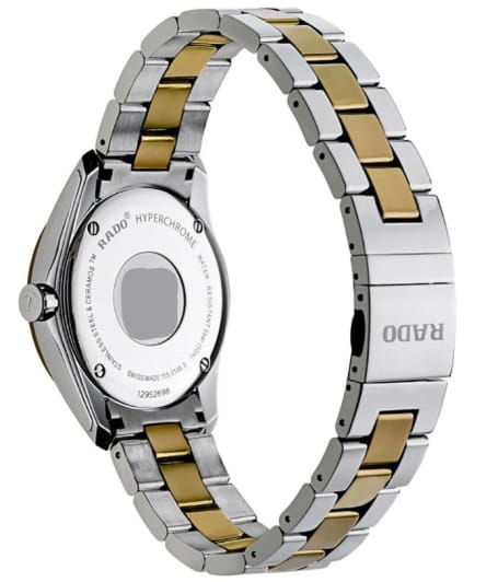 Мужские швейцарские часы с надёжным кварцевым механизмом. Rado Hyperchrome R32188112. Сапфировое стеклоСапфировое стеклоПрочный и надёжный материал из кристалла сапфира синтетического происхождения, характеризующийся особой твёрдостью и устойчивостью к царапинам и повреждениям. устойчивое к мелким механическим повреждениям. Корпус и браслет часов изготовлены из нержавеющей стали и CeramosCeramosМатериал являет собой инновационное сочетание высокотехнологичной керамики и сплава металла. Он объединяет керамическую устойчивость к царапинам и металлический роскошный блеск. . Стальной браслет на раскладной застёжкеРаскладная застёжкаТакой тип застёжки используется только на браслетах из металла. Она никогда не раскрывается полностью, происходит разделение на 2 и более частей. Раскладывающая застёжка снизит вероятность потери часов к минимуму.. Окошко даты находится в положении 3 часа. Стрелки и метки с люминесцентным покрытиемЛюминесцентное покрытиеПозволяет считывать показания времени в темноте. Производители наносят на стрелки, часовые индексы, безель или поверхность циферблата светонакопительный состав, дающий холодное свечение.. Класс водозащиты: 50 метров, позволит защитить корпус от случайных брызг или капель дождя.