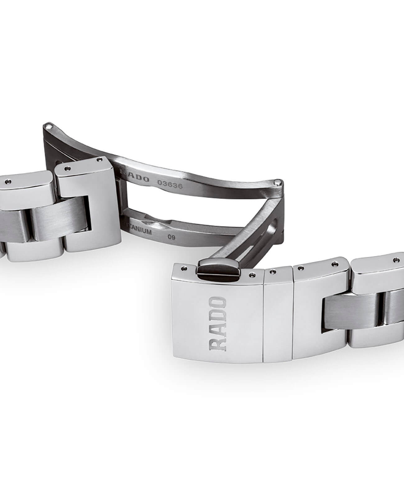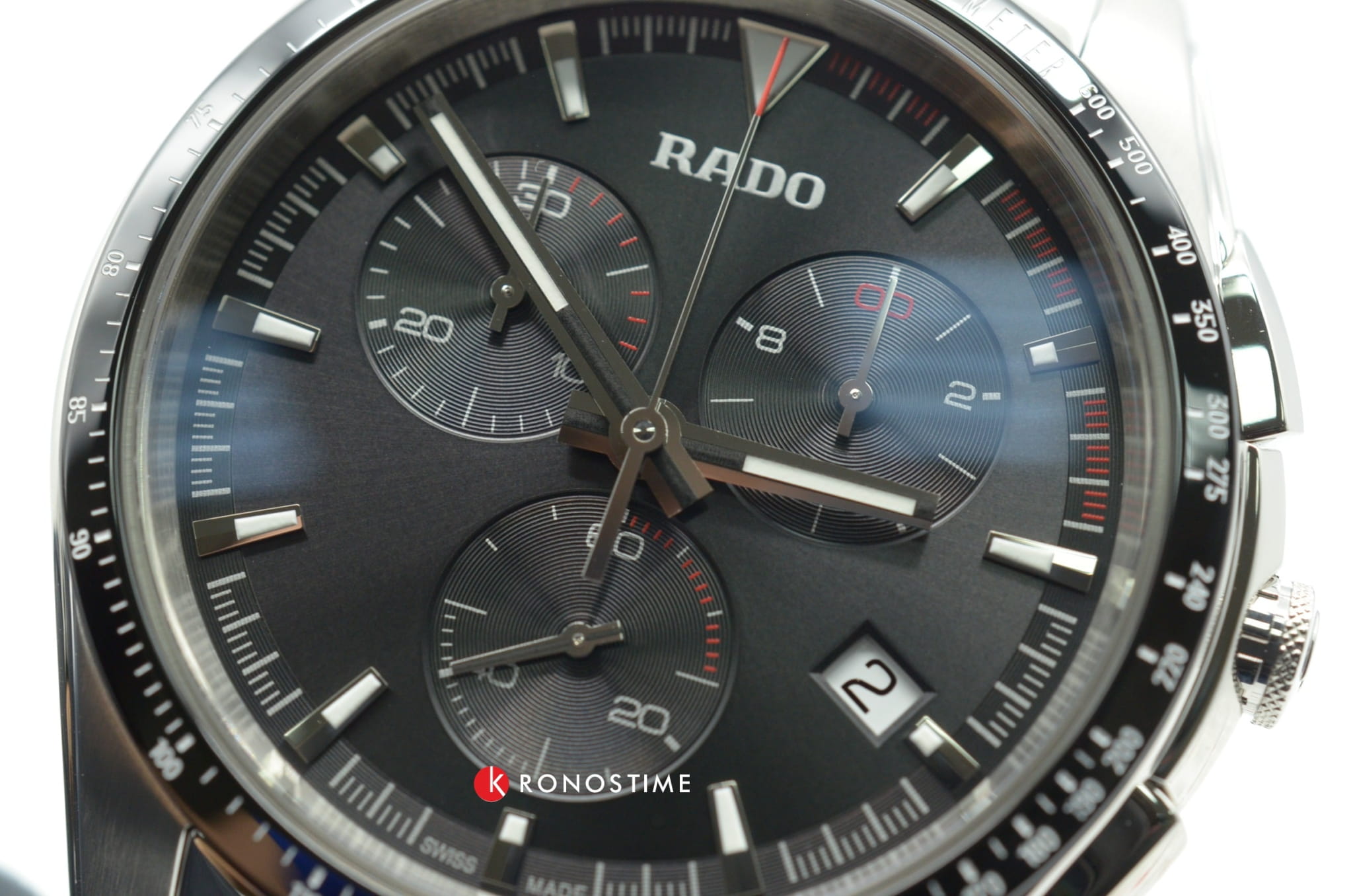 Спортивный хронографХронографФункция позволяет измерять отрезки времени с особой точностью: часы, минуты, секунды. Верным признаком хронографа является наличие на циферблате 3 дополнительных окошек-счётчиков. премиального сегмента позволит чувствовать себя на высоте при любых обстоятельствах, это идеальное дополнение делового или повседневного образа. Чёрный циферблат имеет красные цветовые акценты, придающие общему исполнению динамичности. Кварцевый высокоточный калибр ETA 251.274. Корпус из стали дополнен безелемБезельВнешний ободок, закрепляющий стекло. В спортивных часах так называется поворотное кольцо с делениями на циферблате, выполняет роль таймера – замеряет отрезки времени на шкале. Неподвижный безель – элемент декора. Однонаправленно вращающийся безель на дайверских часах позволяет фиксировать моменты погружения и выныривания на поверхность. из высокотехнологичной керамикиВысокотехнологичная керамикаИнновационный запатентованный Rado материал с гладкой или матовой поверхностью. Керамика за счёт кристаллической структуры обладает повышенной устойчивостью от возникновения царапин. Материал способен принимать температуру тела человека, обеспечивая невероятный комфорт при ношении.. Водостойкость 100 метров. Выпуклое стекло из сапфира с антибликовой поверхностью. Секундомер, календарь, тахиметрТахиметрРазмеченная шкала, располагается на ободке или безеле часов. Тахиметр позволяет рассчитать скорость на определённом участке пути, расстояние измеряется в километрах или милях.. Диаметр корпуса: 44,9 мм.