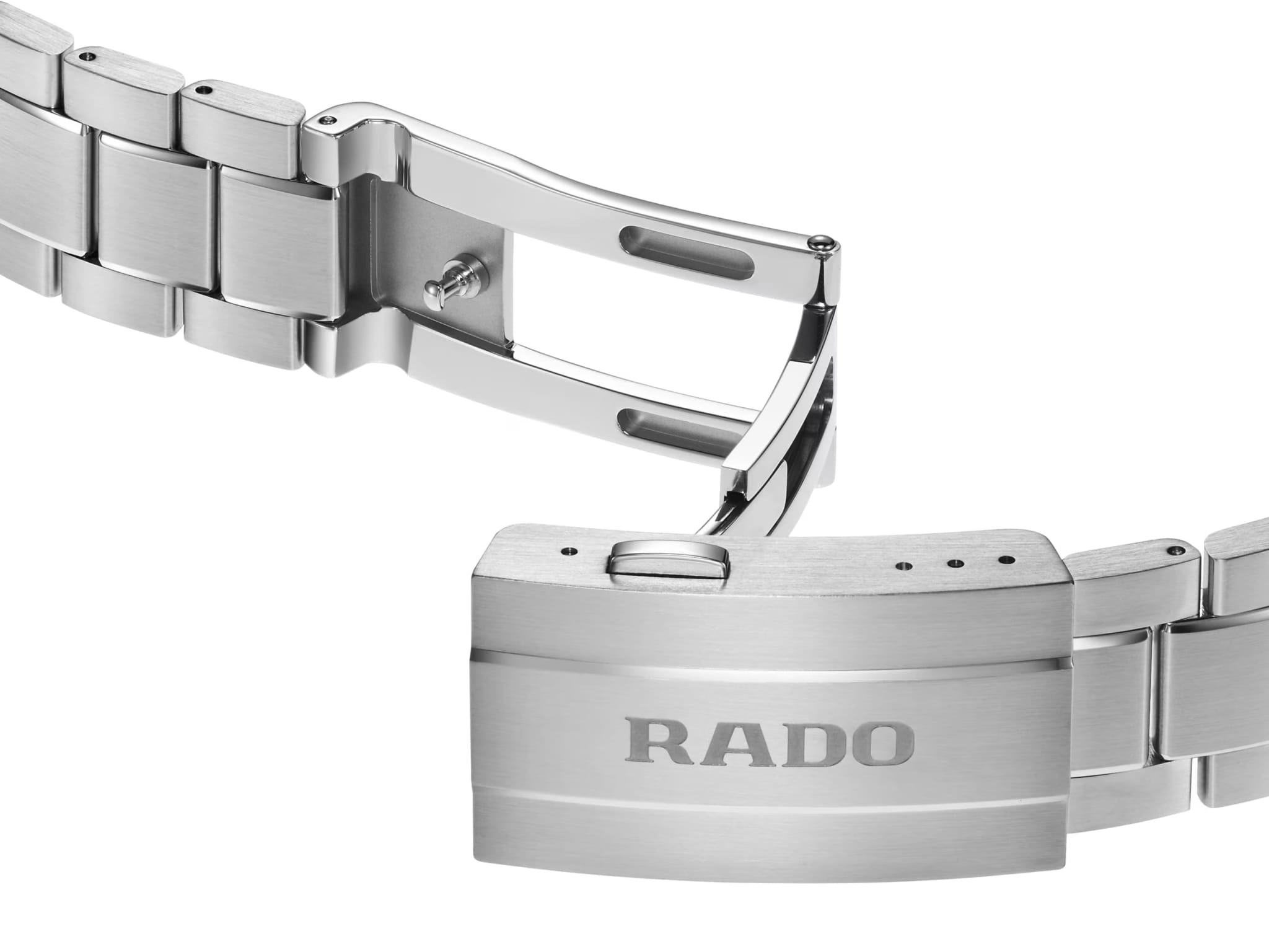 Мужские кварцевые часы Rado HyperChrome — это современное воплощение точности и мастерства материалов. Корпус диаметром 41,5 мм и толщиной 11,7 мм выполнен из полированной и матовой нержавеющей стали. БезельБезельВнешний ободок, закрепляющий стекло. В спортивных часах так называется поворотное кольцо с делениями на циферблате, выполняет роль таймера – замеряет отрезки времени на шкале. Неподвижный безель – элемент декора. Однонаправленно вращающийся безель на дайверских часах позволяет фиксировать моменты погружения и выныривания на поверхность. изготовлен из высокотехнологичной керамикиВысокотехнологичная керамикаИнновационный запатентованный Rado материал с гладкой или матовой поверхностью. Керамика за счёт кристаллической структуры обладает повышенной устойчивостью от возникновения царапин. Материал способен принимать температуру тела человека, обеспечивая невероятный комфорт при ношении. синего цвета, придающей часам прочность и изысканность. Циферблат синего цвета с лакированным покрытием оформлен индексами и стрелками с люминесцентным покрытиемЛюминесцентное покрытиеПозволяет считывать показания времени в темноте. Производители наносят на стрелки, часовые индексы, безель или поверхность циферблата светонакопительный состав, дающий холодное свечение. Super-Luminova®. Особенность подсветки — зелёное свечение метки 12 часов и минутной стрелки, и синее — остальных индексов и часовой стрелки, что обеспечивает интуитивное считывание времени в темноте. Циферблат защищён выпуклым сапфировым стекломСапфировое стеклоПрочный и надёжный материал из кристалла сапфира синтетического происхождения, характеризующийся особой твёрдостью и устойчивостью к царапинам и повреждениям. с антибликовым покрытиемАнтибликовое покрытиеСлой оксида металла в 0,13-0,3 микрон, благодаря которому стекло часов не бликует и не отражает свет. Антибликовое покрытие уменьшает отражение света в 10 раз, обеспечивая отличную читаемость показателей циферблата. на внутренней стороне. Механизм — кварцевый. Окошко даты расположено в положении 3 часов. Часы оснащены трёхрядным стальным браслетом с центральными звеньями и трёхсекционной застёжкой с системой быстрой регулировки. Водонепроницаемость 150 м позволяет использовать часы для плавания и повседневного ношения. Идеальный выбор для тех, кто ценит инновации, точность и смелый дизайн.